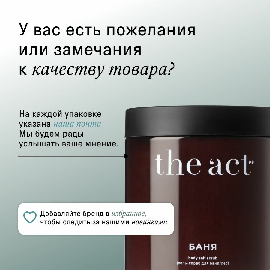 Ниже Вы можете прочитать отзывы на Скраб-соль для тела The Act labs бани и сауны "Лес" с маслами 500 гр, ознакомится с подробными характеристиками, посмотреть интересные обзоры и фотографии на Скраб-соль для тела The Act labs бани и сауны "Лес" с маслами 500 гр.