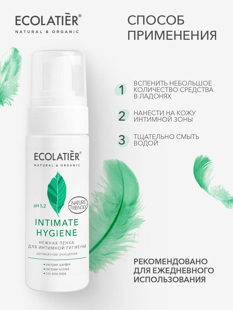 Нежная пенка для интимной гигиены Intimate Hygiene с экстрактами шалфея и хлопка, 150 мл, Ecolatier интересное:
