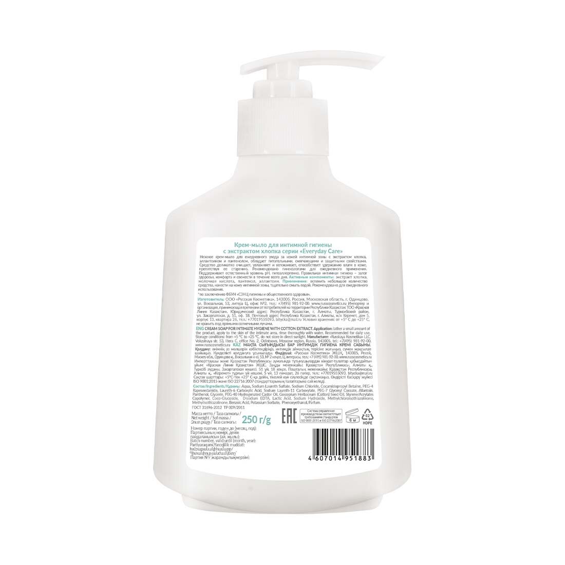 Красная линия Увлажняющее крем-мыло для интимной гигиены с Экстрактом Хлопка против раздражения и сухости, 250 мл