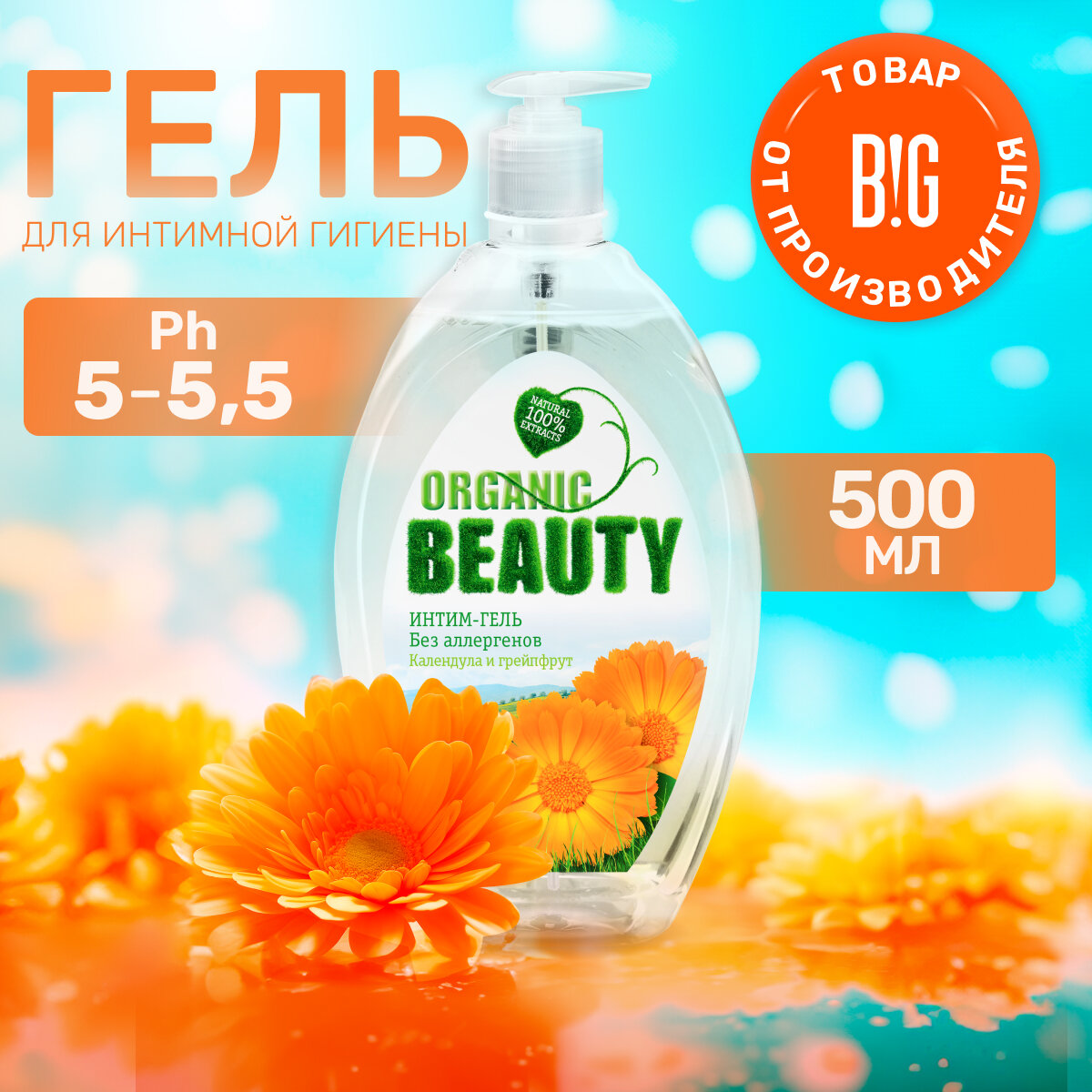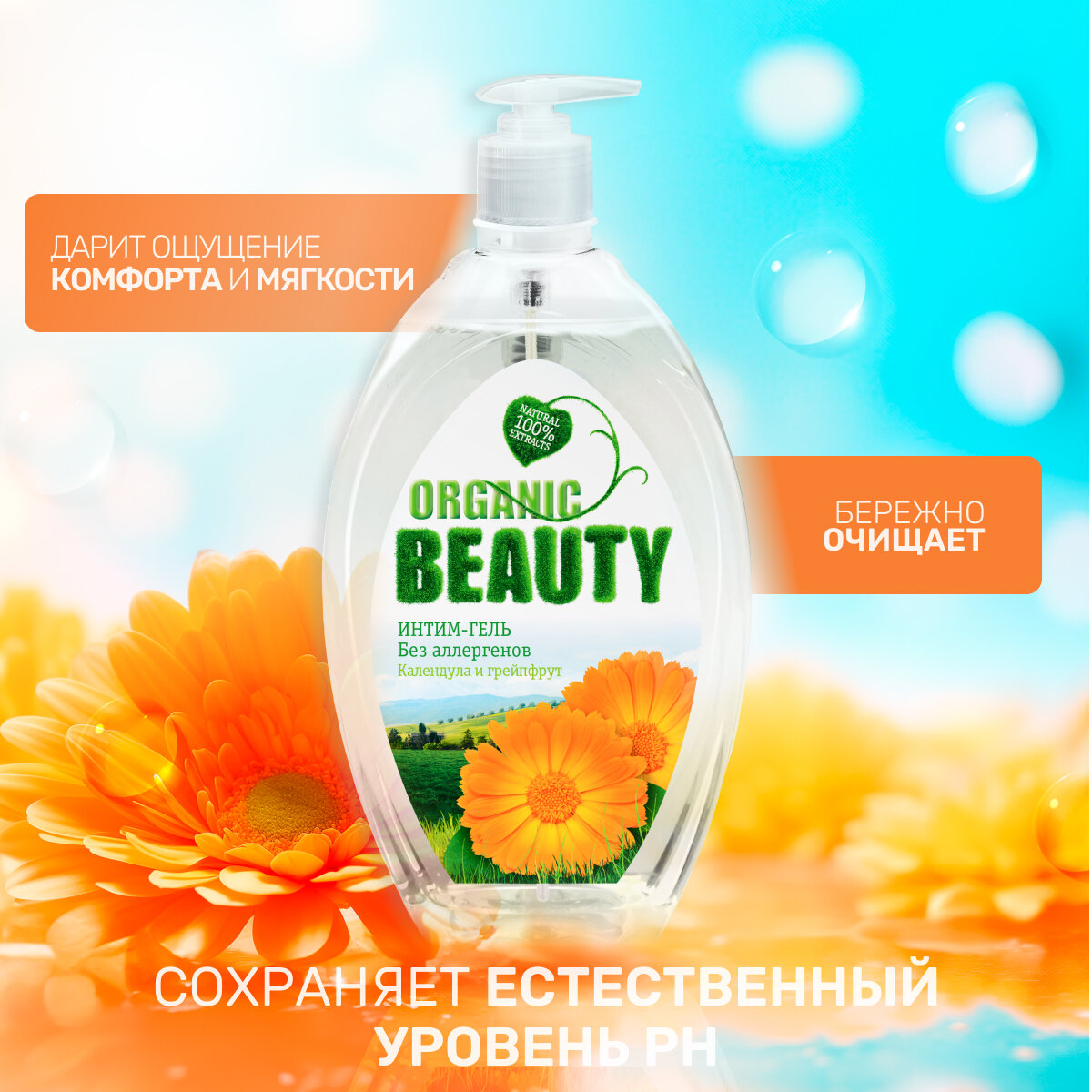 Купить Гель для интимной гигиены "Organic Beauty", календула и грейпфрут, 500 мл