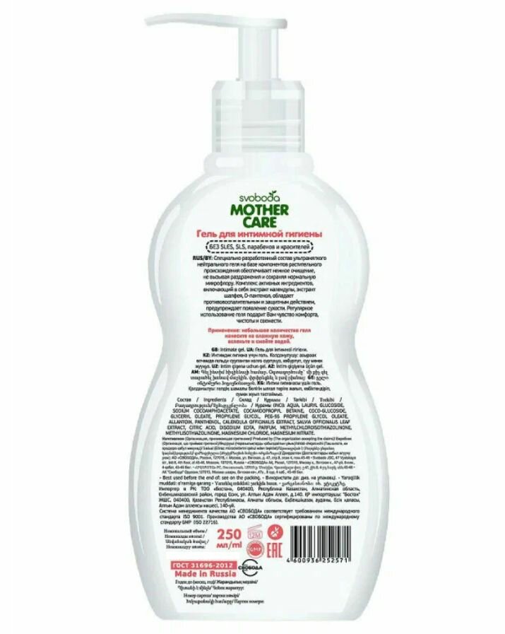 Гель для интимной гигиены Свобода "Mother Care", во флаконе, 250 мл