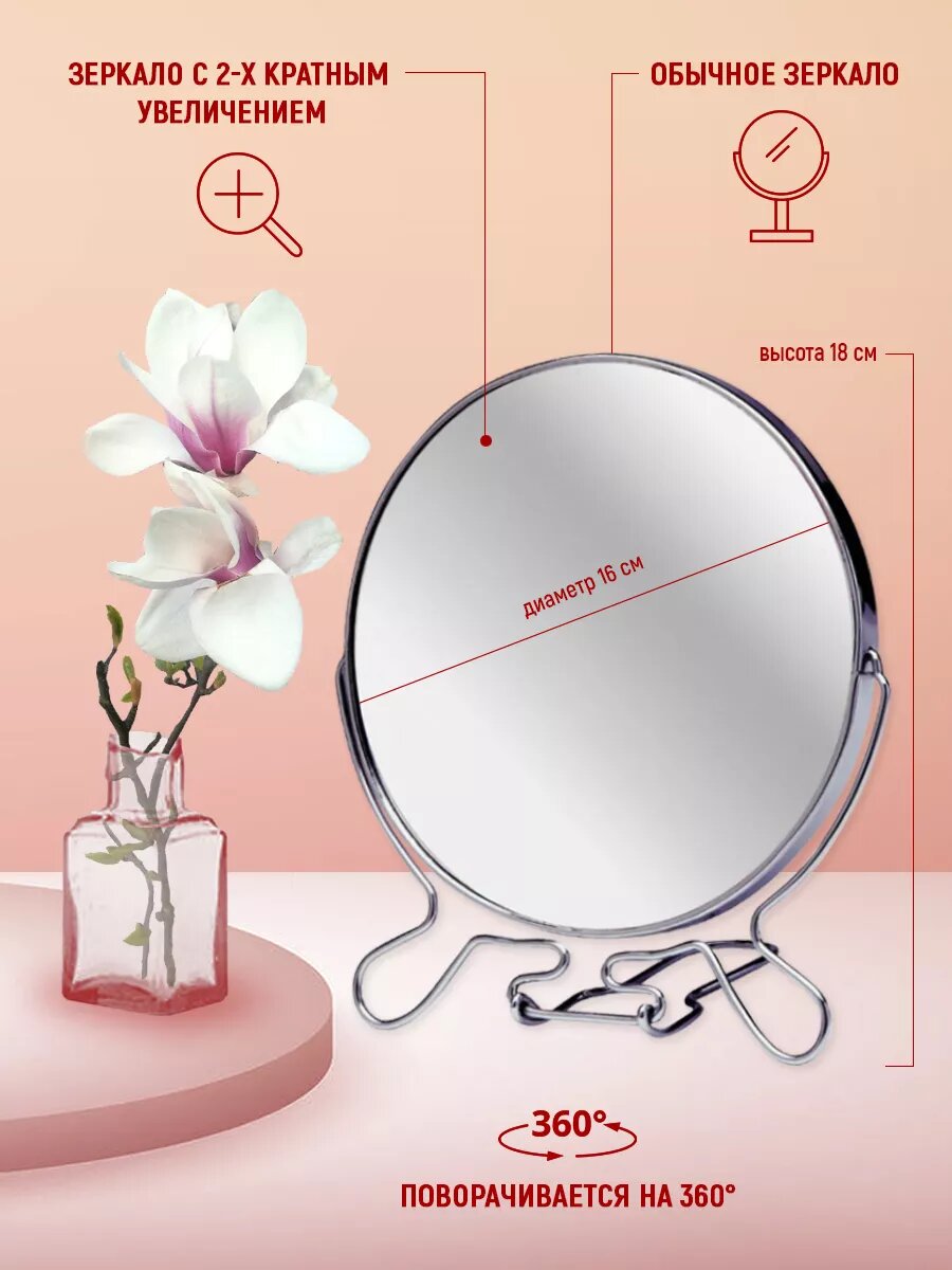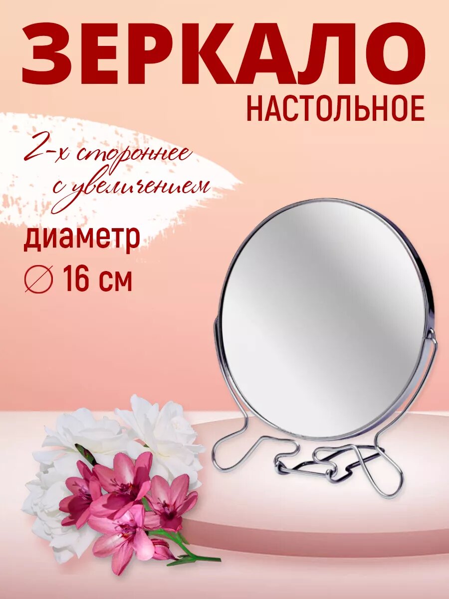 Зеркало косметическое настольное двустороннее разного увеличения 16 см интересное: