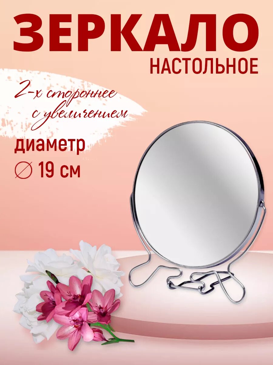 Зеркало косметическое настольное двустороннее разного увеличения 19 см интересное: