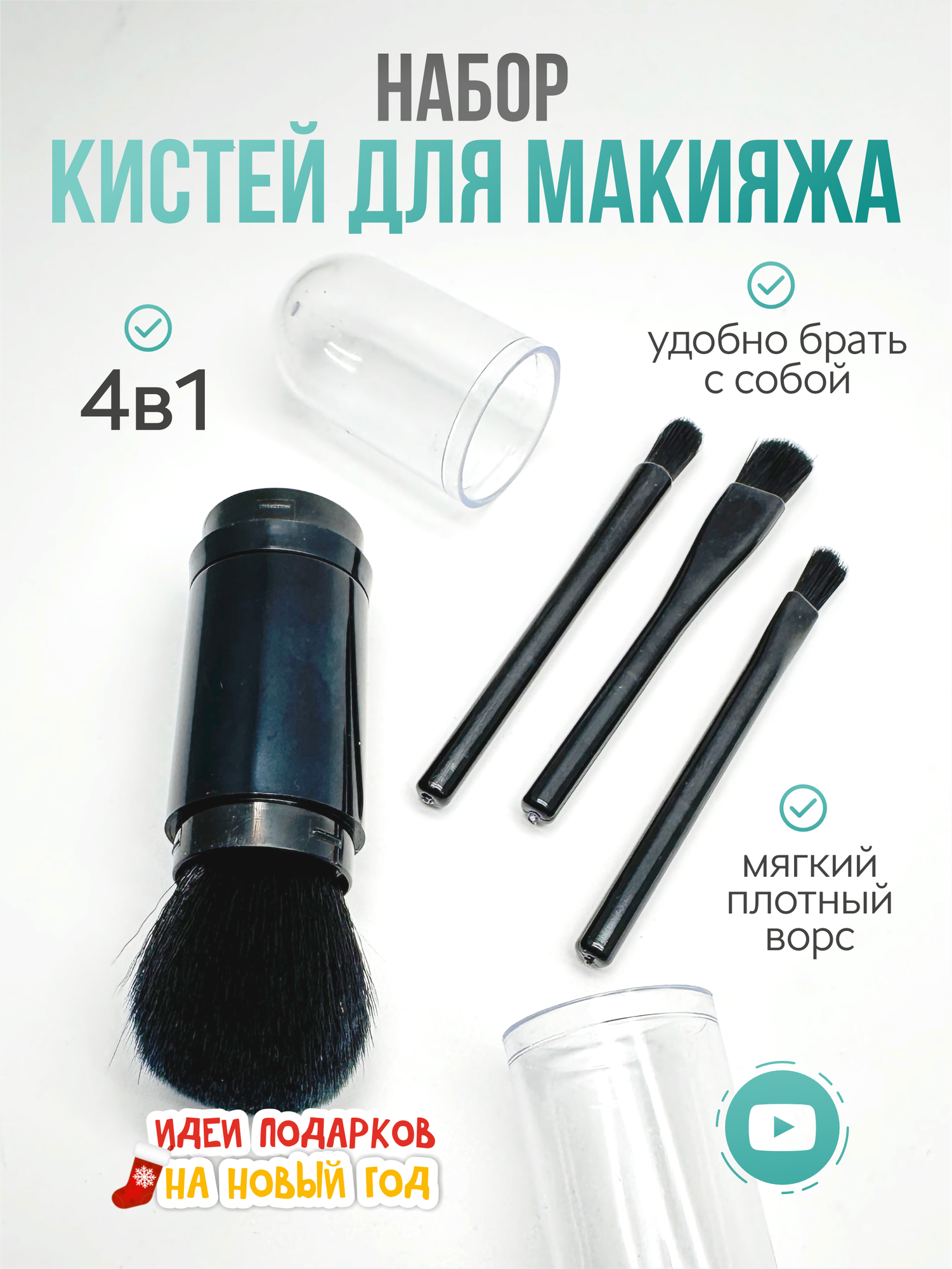 Набор кистей для макияжа в футляре, 4 шт, черный интересное: