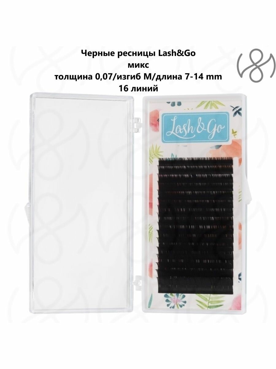 Lash&Go Ресницы для наращивания черные C+ 0.07 микс 7-14 mm (16 линий) / Лэш Гоу