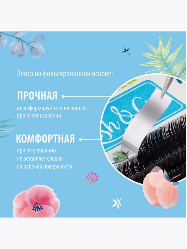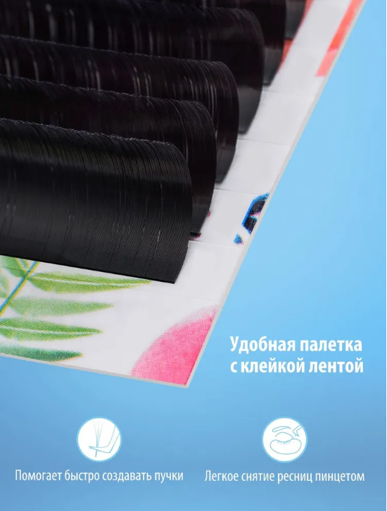 | Дополнительная информация | Поместите линию ресниц на планшет и подготовьте клей для наращивания ресниц. С помощью пинцета снимите ресницу или пучок с ленты, обмакните основание в клей и поставьте на натуральную ресницу. |
