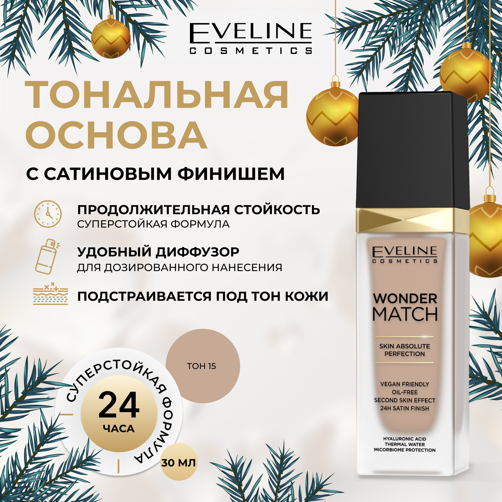 Купить Адаптирующаяся тональная основа EVELINE WONDER MATCH тон 15 Natural, 30мл