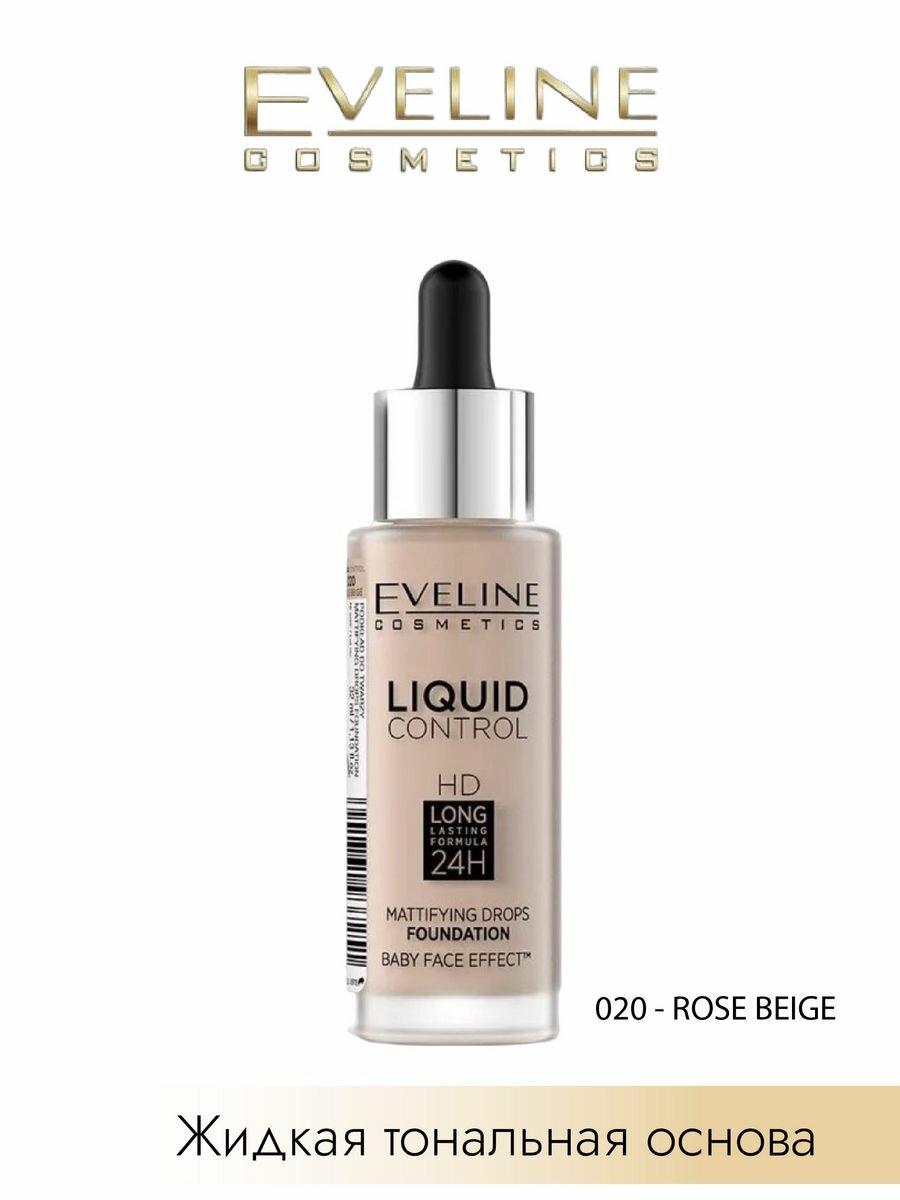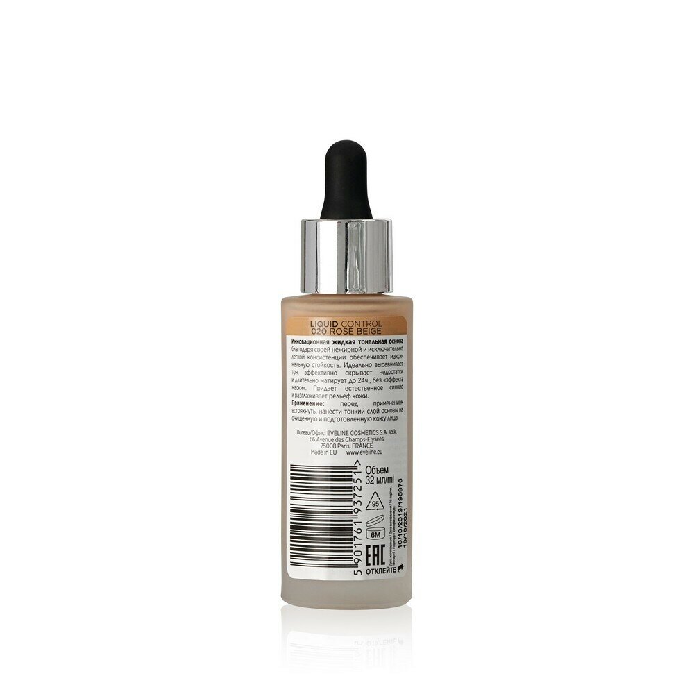 EVELINE Инновационная жидкая тональная основа LIQUID CONTROL №020 - ROSE BEIGE, 32мл