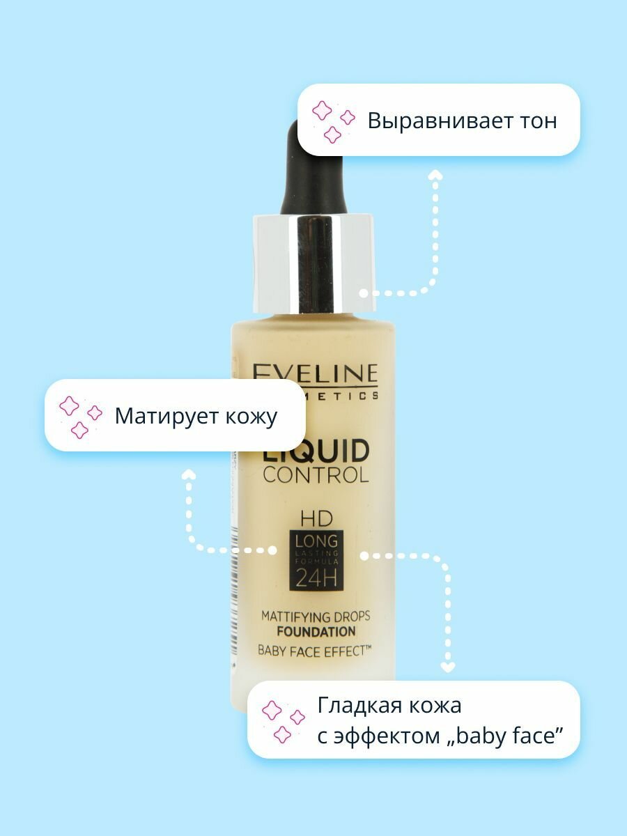 Тональная основа Eveline Liquid Control, инновационная, жидкая, 010, light beige, 32 мл