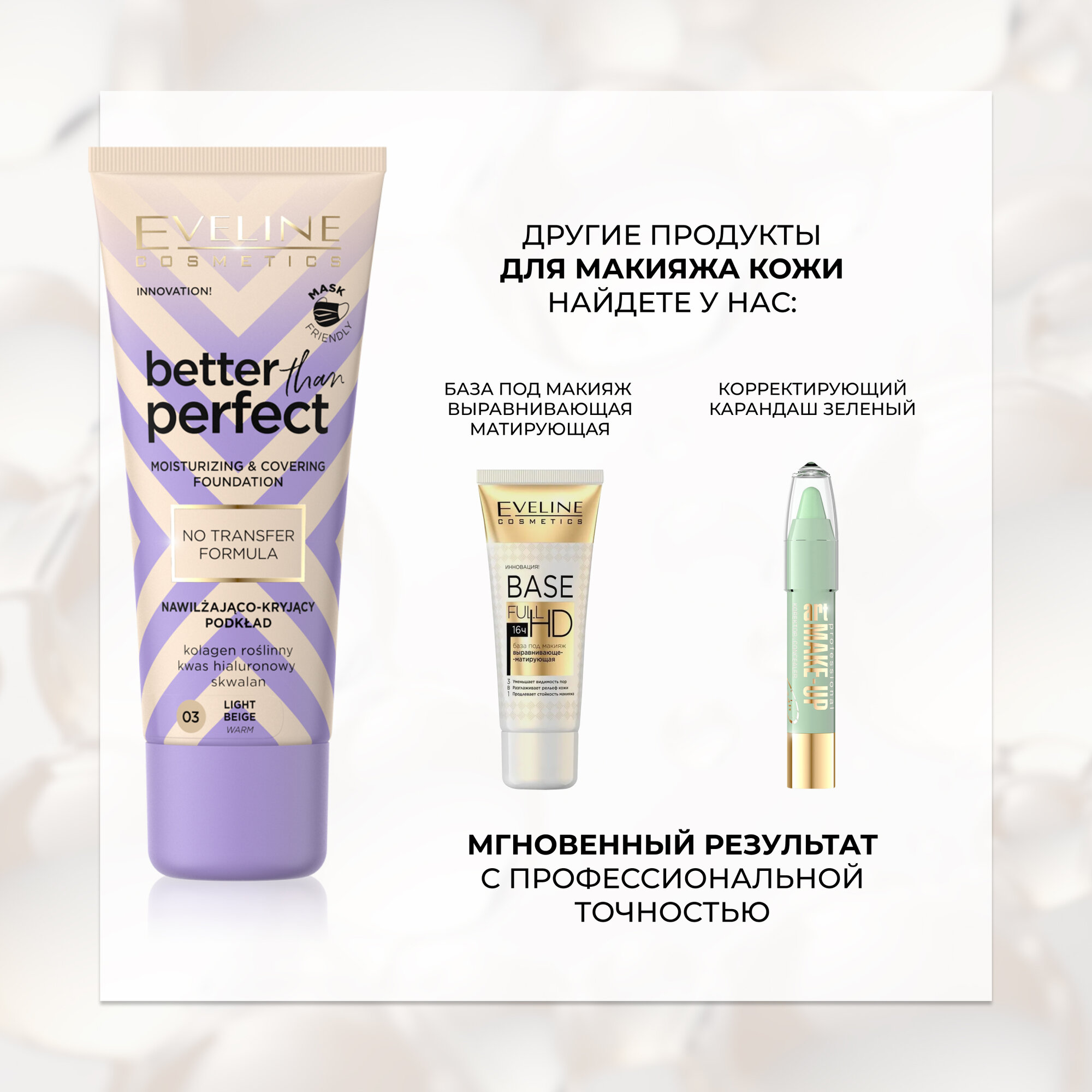 Купить Тональная основа EVELINE BETTER THAN PERFECT стойкая увлажняющая тон № 03 LIGHT BEIGE, 30мл