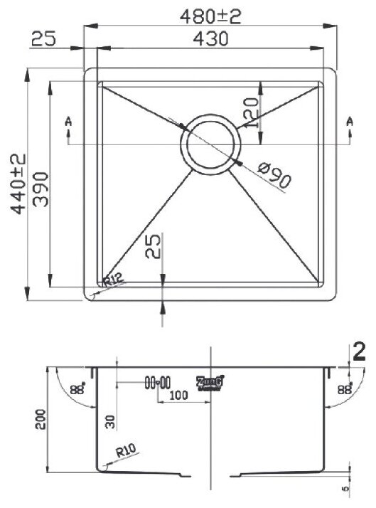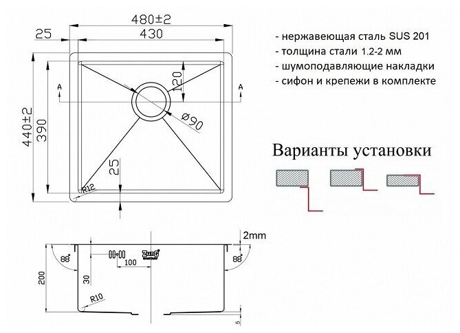 Кухонная мойка Zorg ZL R-480440, нержавеющая сталь, брашинг матовая, сварная, полная комплектация, толщина 1,2 мм