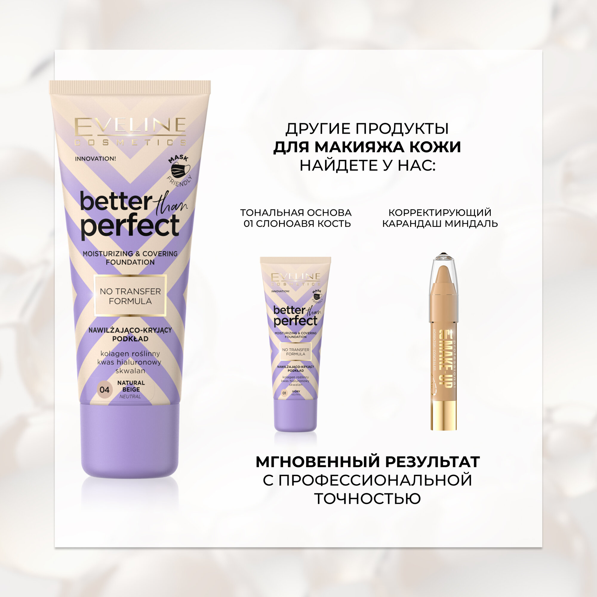 EVELINE BETTER THAN PERFECT Стойкая увлажняющая тональная основа 01–IVORY 30мл