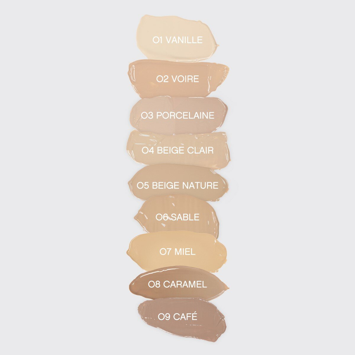 | Цвет товара | 01 vanill, 02 ivory, 03 porcelaine, 04 beige clair, 05 beige nature, 06 sable, 07 miel, 08 Caramel, 09 cafe |