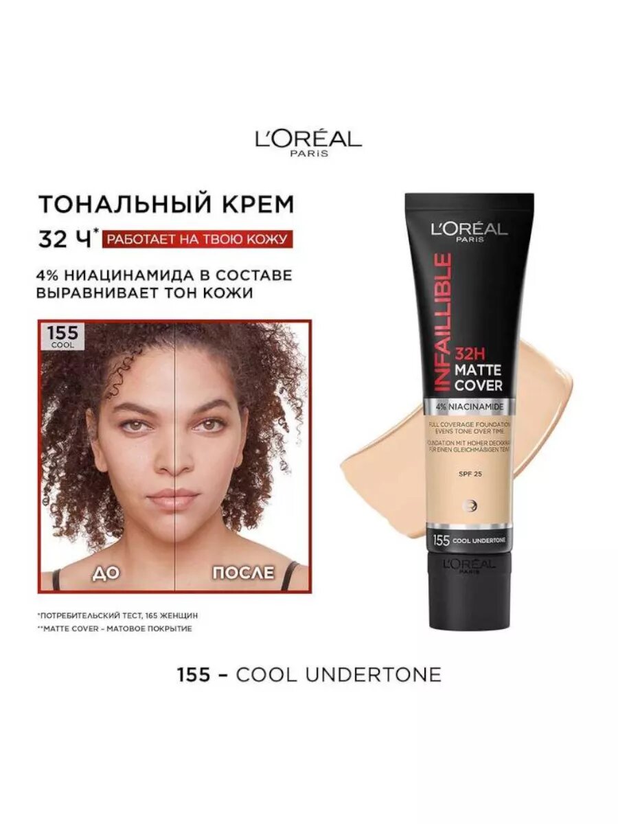 Лореаль Париж / L'Oreal Paris Infaillible - Тональный крем 32h-matte тон 155 Cool Undertone 30 мл