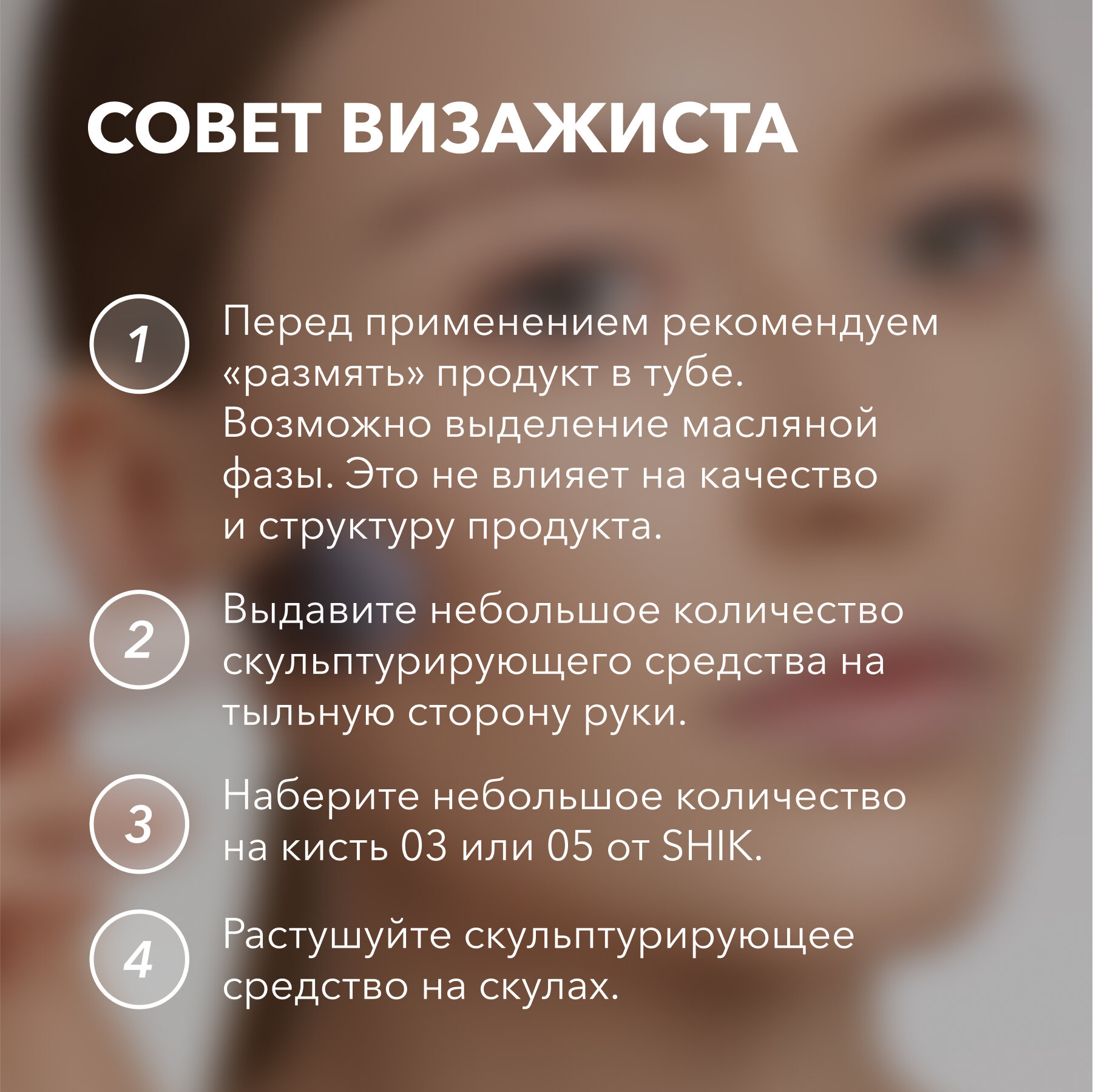 | Способ применения | нанести небольшое количество скульптора на необходимые участки и растушевать кистью или спонжем |