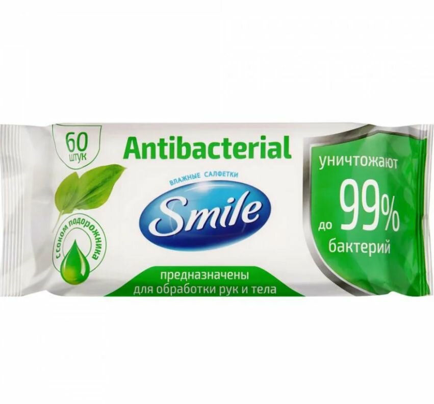 Купить Влажная салфетка SMILE W Antibacterial с подорожником 60 шт 4211271042112730 14410153 12