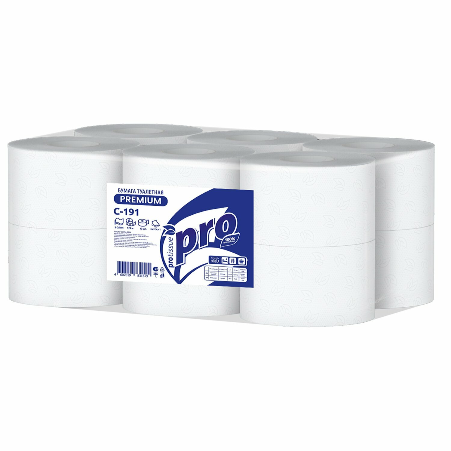 Туалетная бумага PROtissue Instant Premium C191 двухслойная 170 метров 12 рулонов с перфорацией