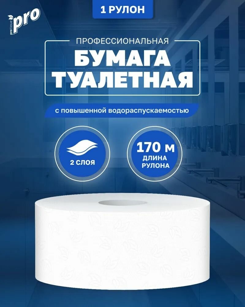 Бумага туалетная 170 метров, protissue premium, 2-слойная,