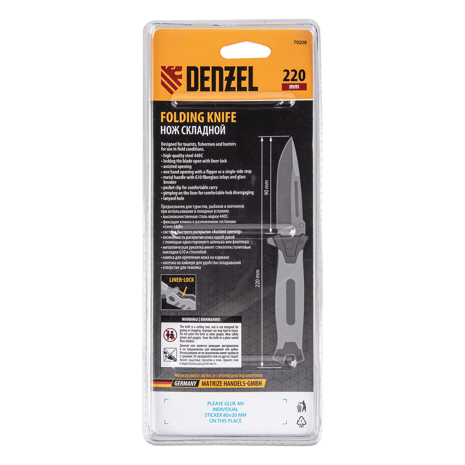 Купить Нож складной Denzel многоцелевой, системы Liner-Lock, с накладкой G10 на прямой рук-ке+стеклобой 79208