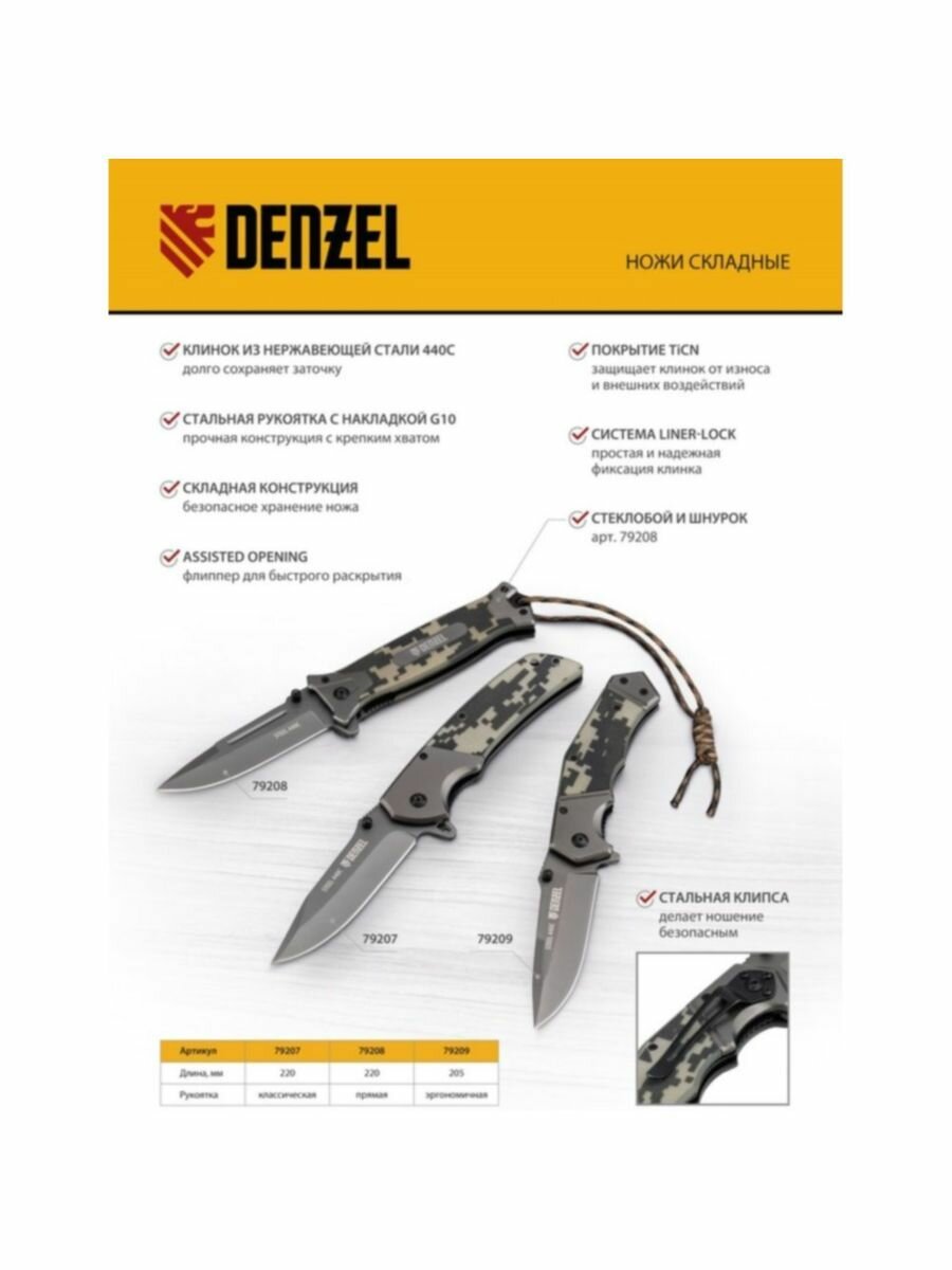 СохранитьНож складной Denzel многоцелевой, системы Liner-Lock, с накладкой G10 на эргономичной рукоятке 79209 интересное: