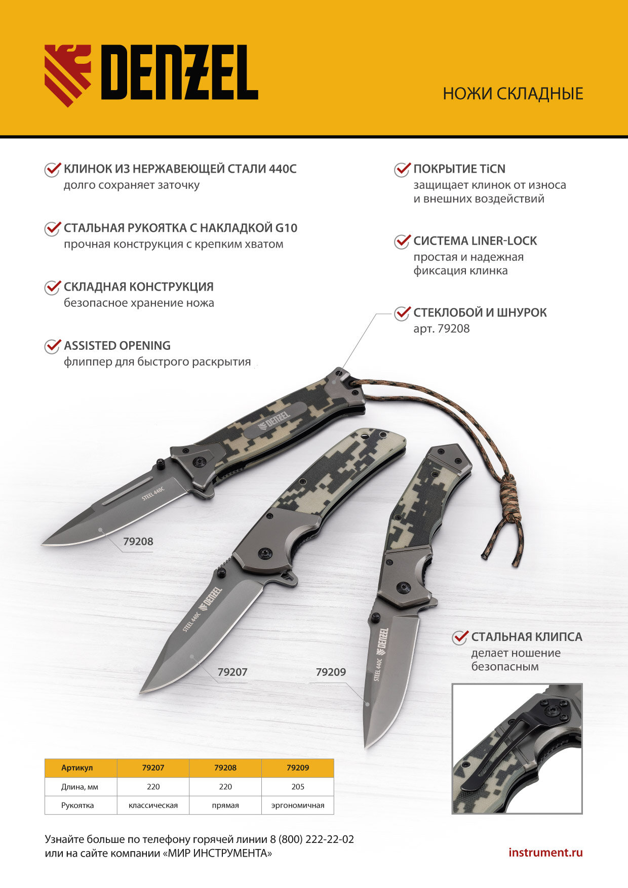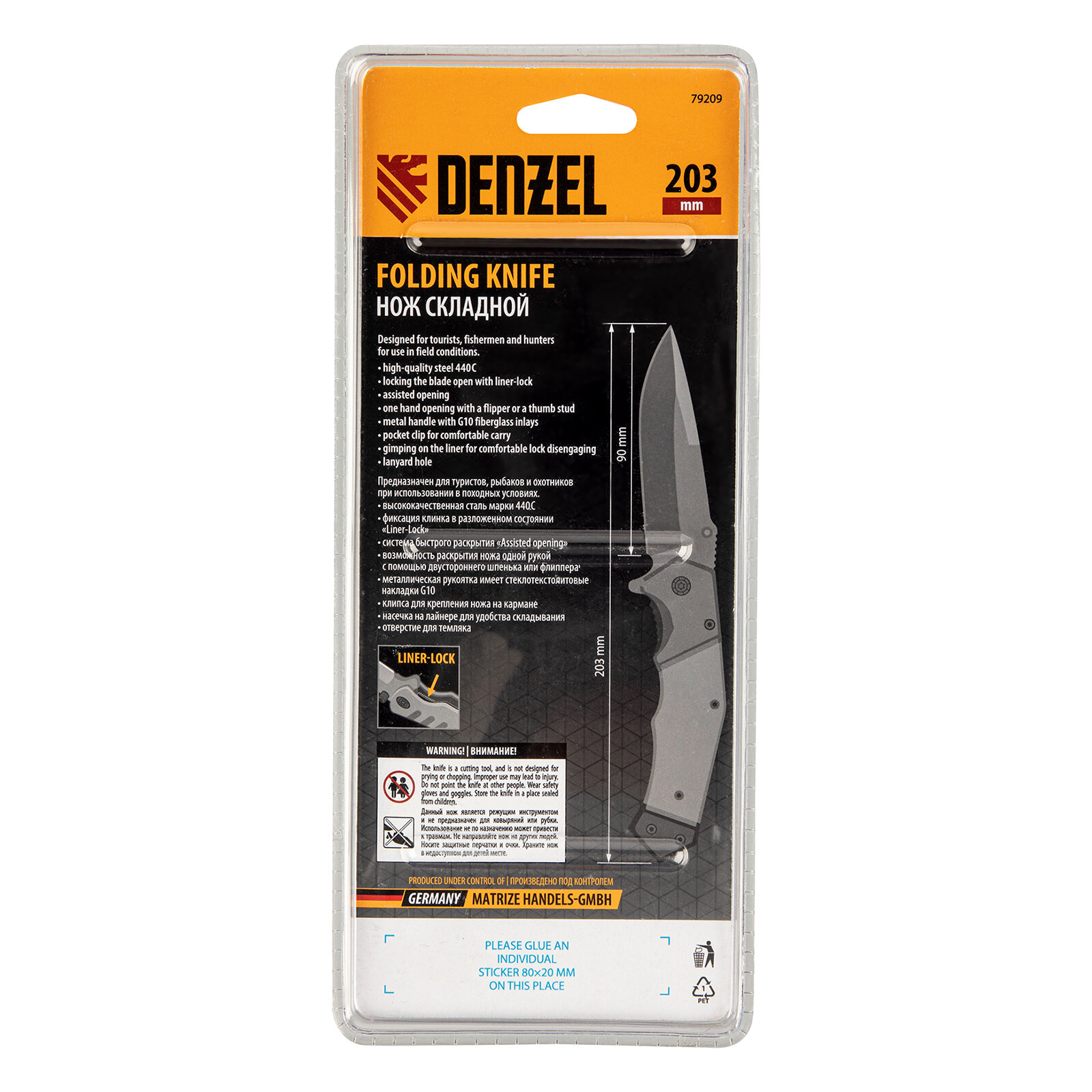 Купить Нож складной Denzel многоцелевой, системы Liner-Lock, с накладкой G10 на эргономичной рукоятке 79209