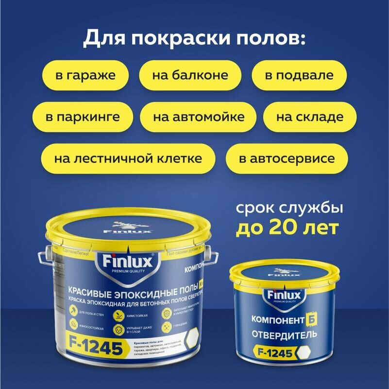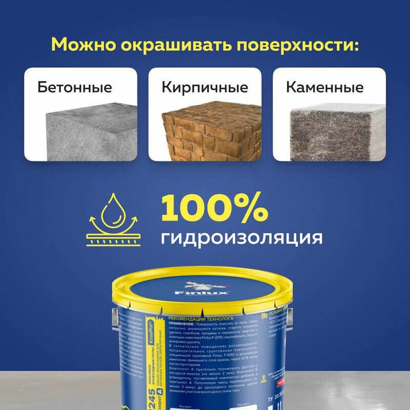 Эпоксидная краска для пола, Эмаль КрасПол Finlux F-1245 (7,5 кв.м., Серая) интересное: