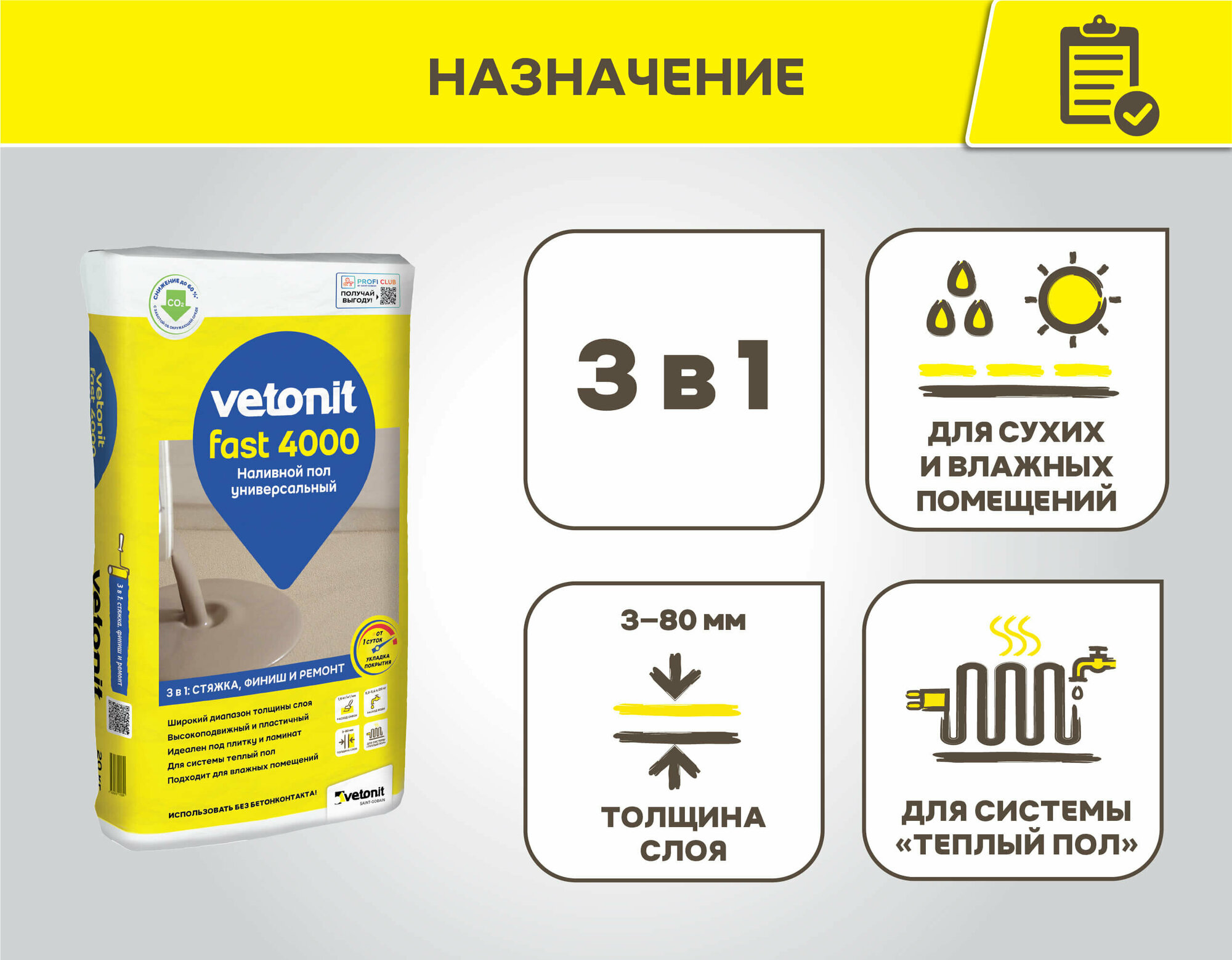 Вебер. ветонит Фаст 4000 универсальный наливной пол (20кг) / WEBER.VETONIT Fast 4000 быстротвердеющий универсальный наливной пол (20кг)