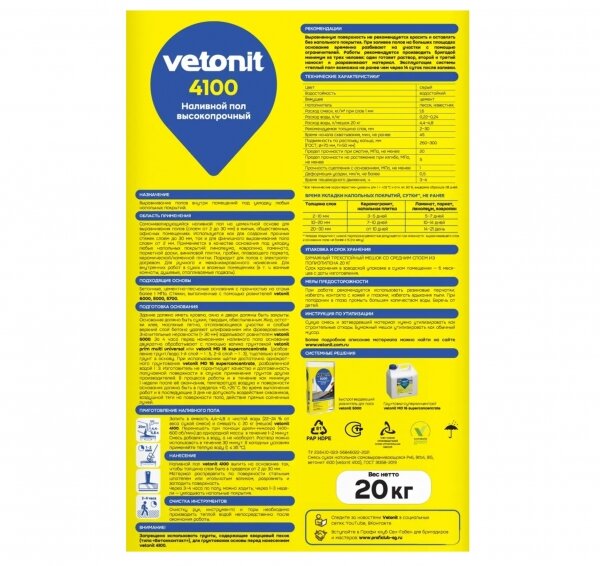 Вебер.ветонит 4100 наливной пол высокопрочный (20кг) / Weber.vetonit 4100 наливной пол высокопрочный (20кг) интересное: