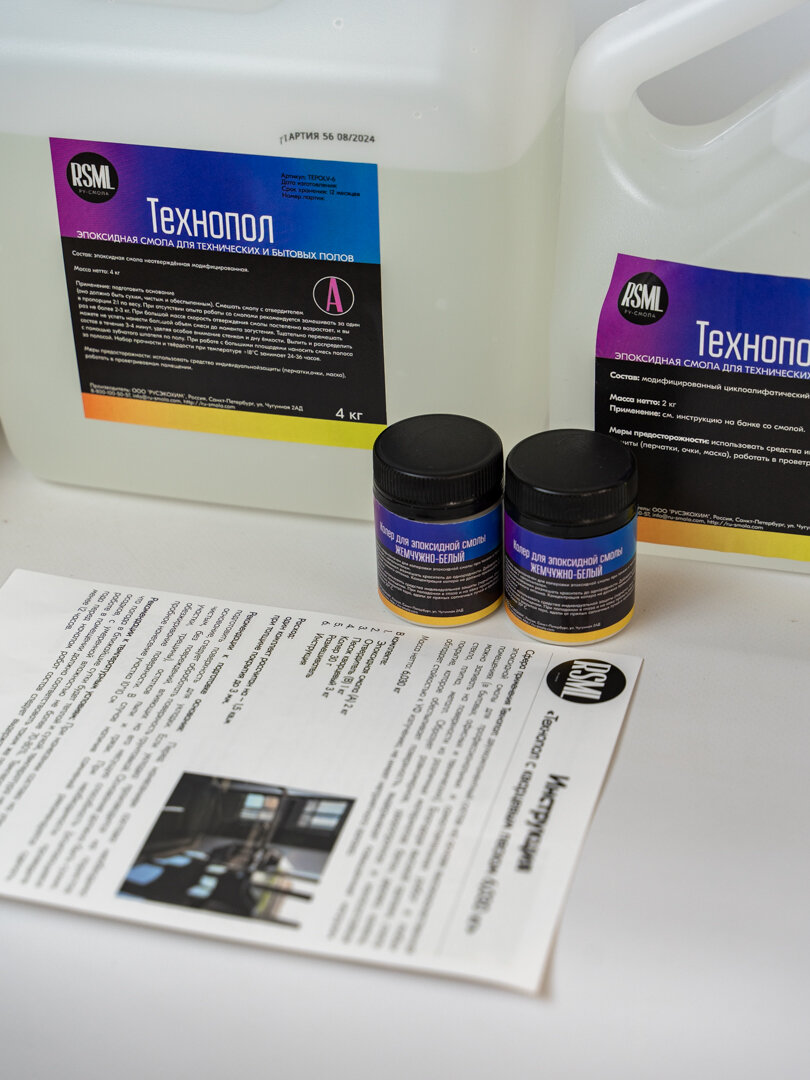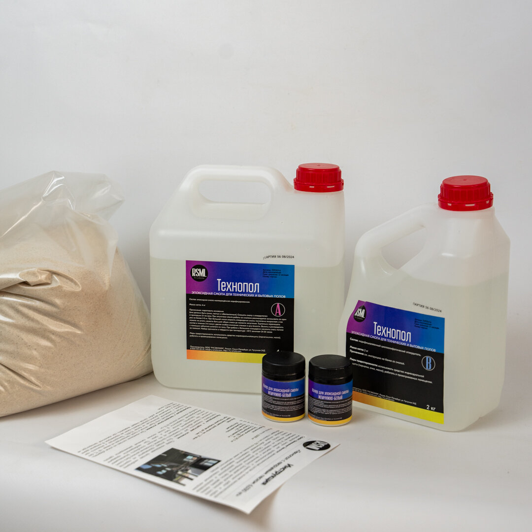 Эпоксидный наливной пол "Технопол" набор с кварцевым песком (6,030 кг) жемчужно-белый