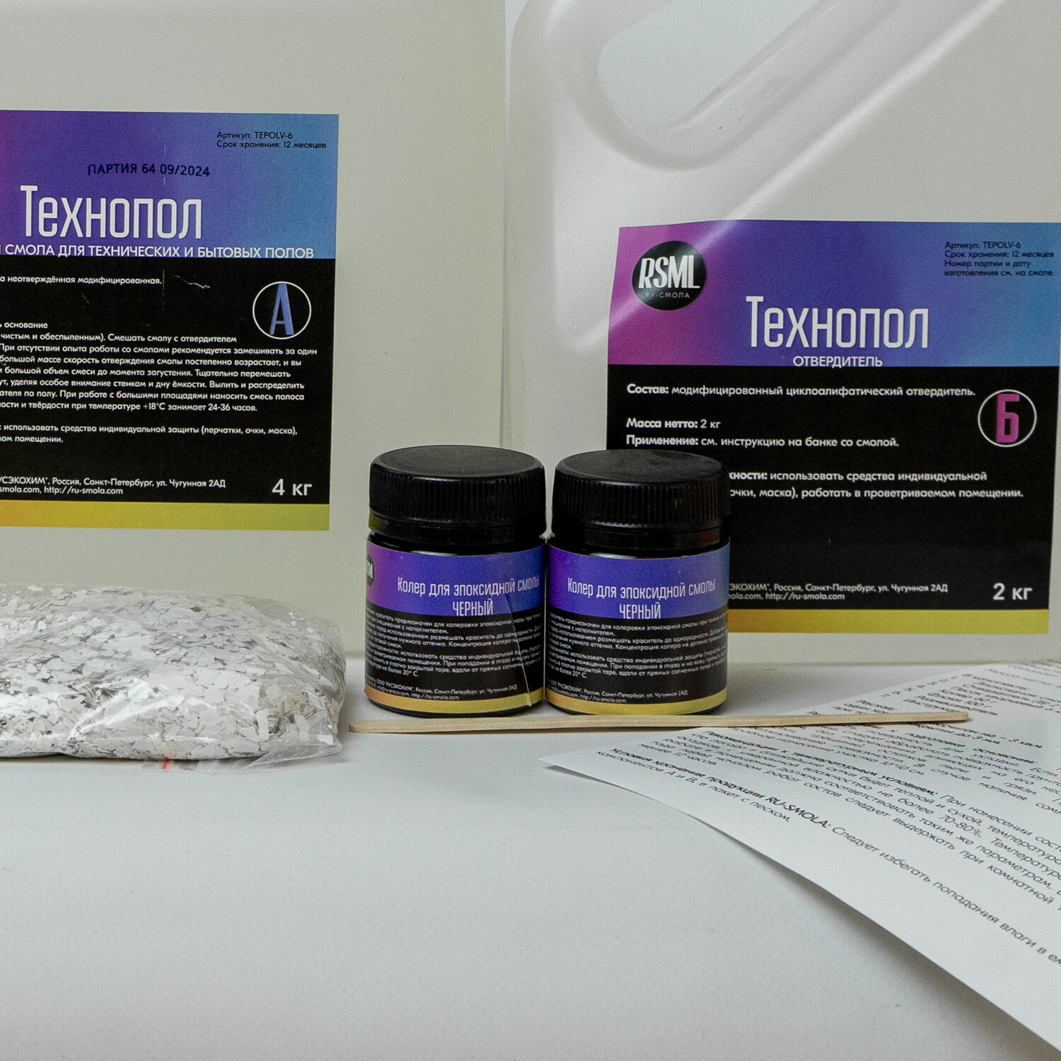 Эпоксидный наливной пол "Технопол" набор с кварцевым песком (6,030 кг) черный
