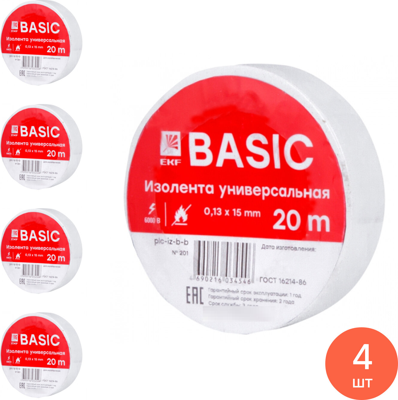 Изолента EKF Basic 15 мм 20 м ПВХ цвет белый