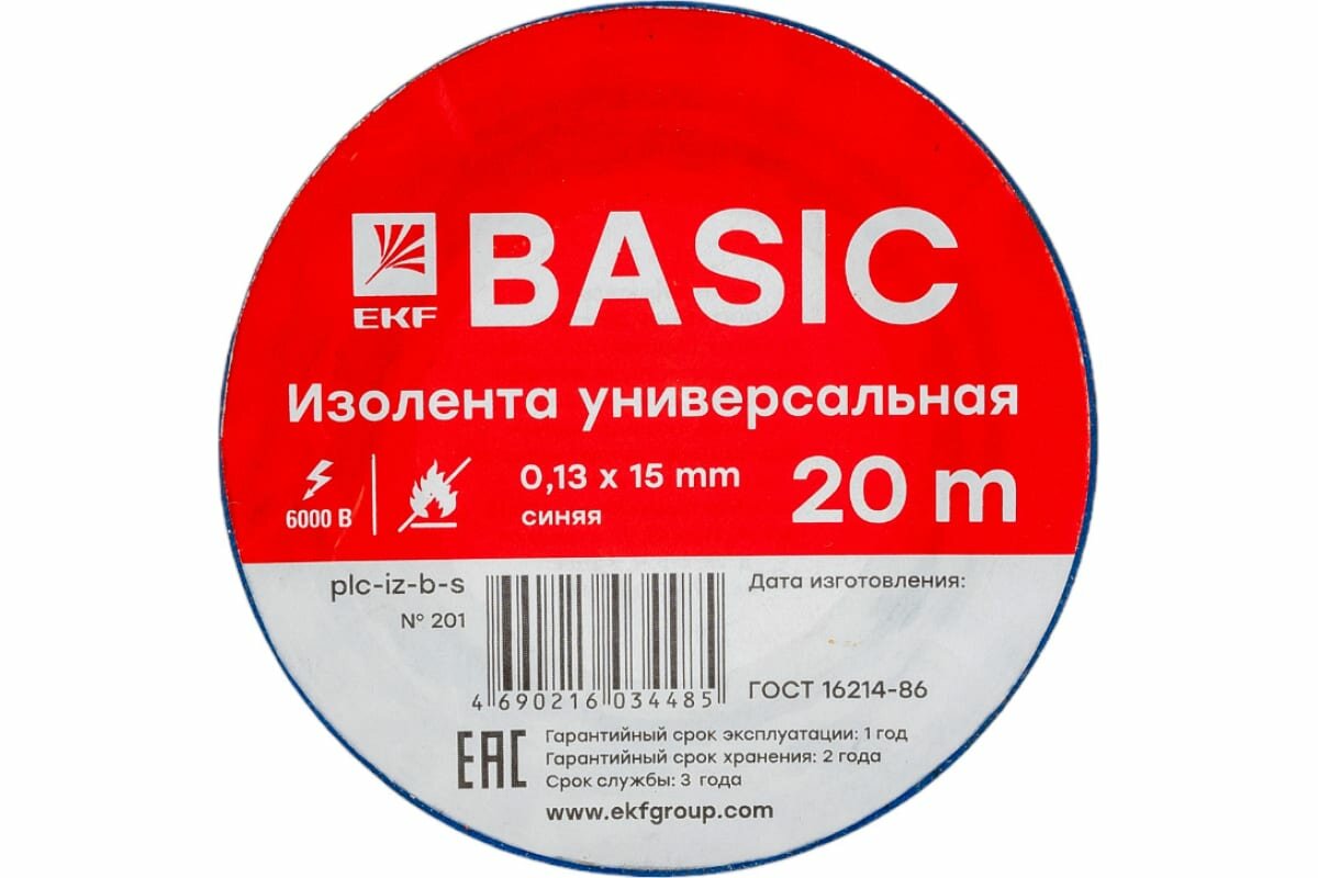 EKF Basic Изолента класс В (0,13х15мм) (20м.) синяя