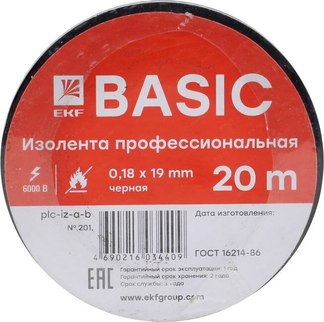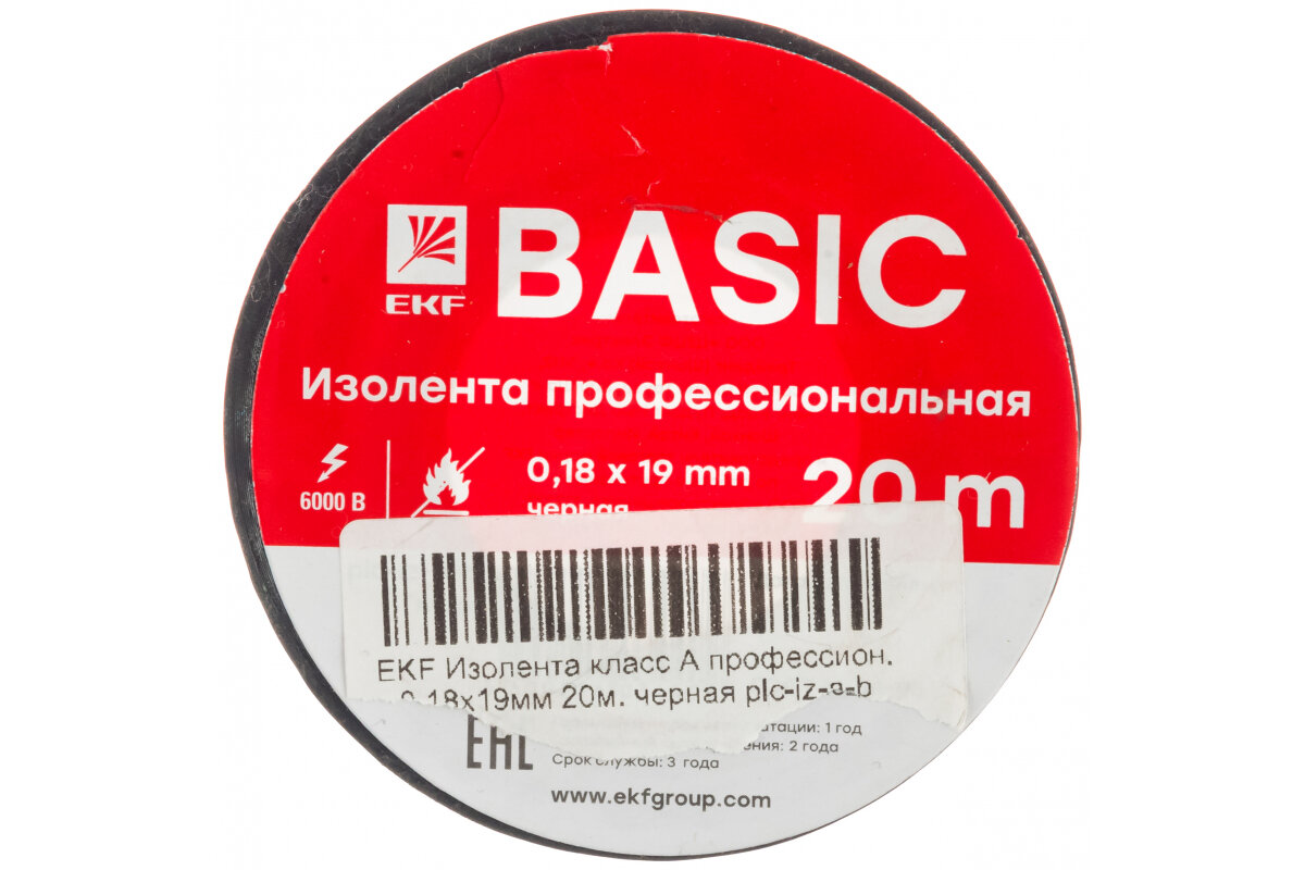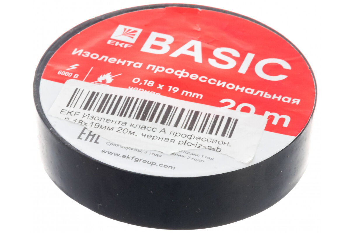 Изолента ПВХ EKF / ЕКФ Basic профессиональная 0.18х19мм, черная 20м, plc-iz-a-b / защитная лента (комплект из 16 шт)