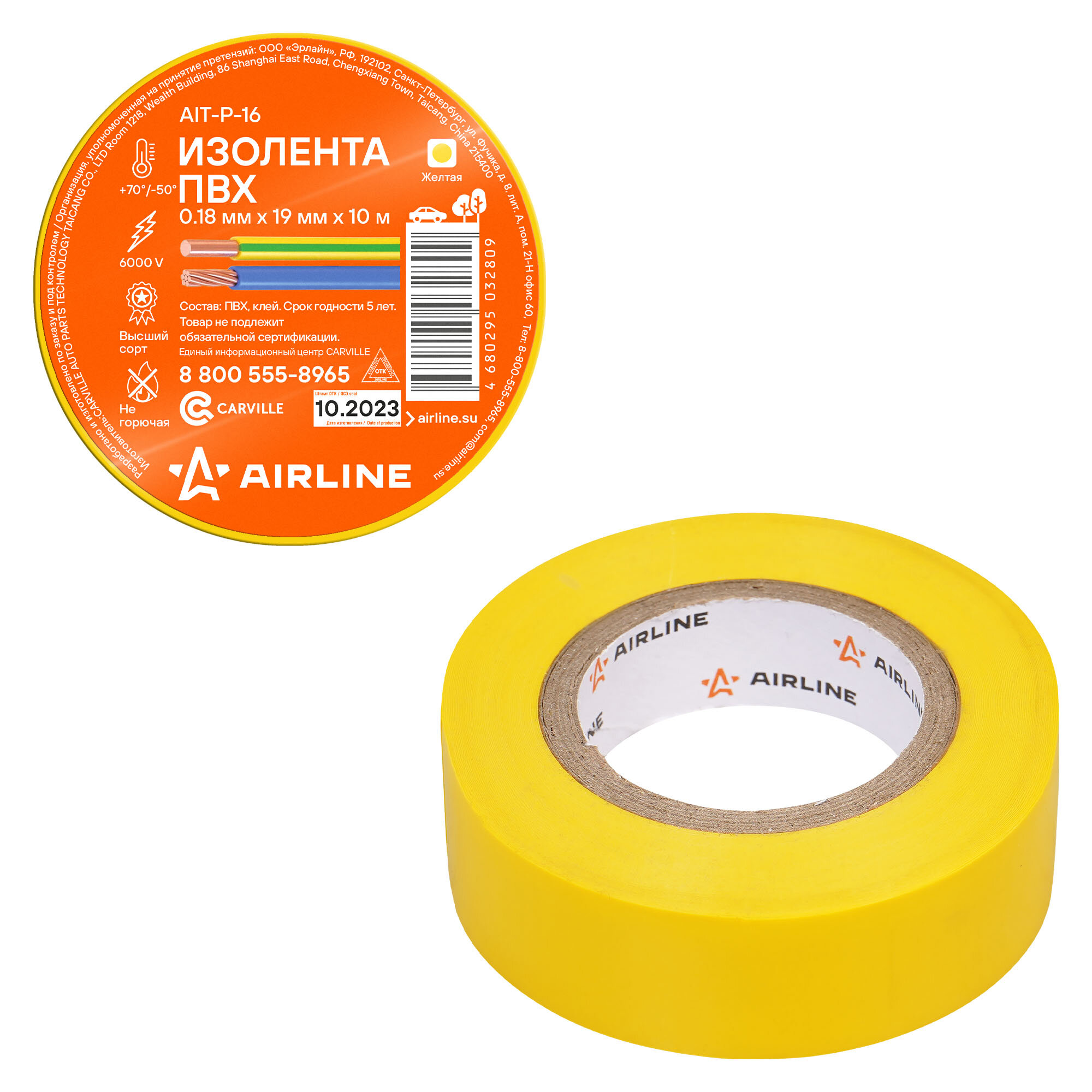 Купить Изолента ПВХ, желтая, 19 мм*10 м AIT-P-16 AIRLINE
