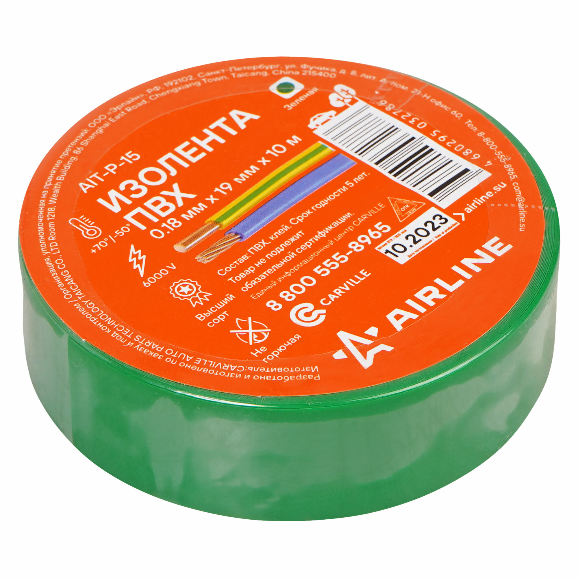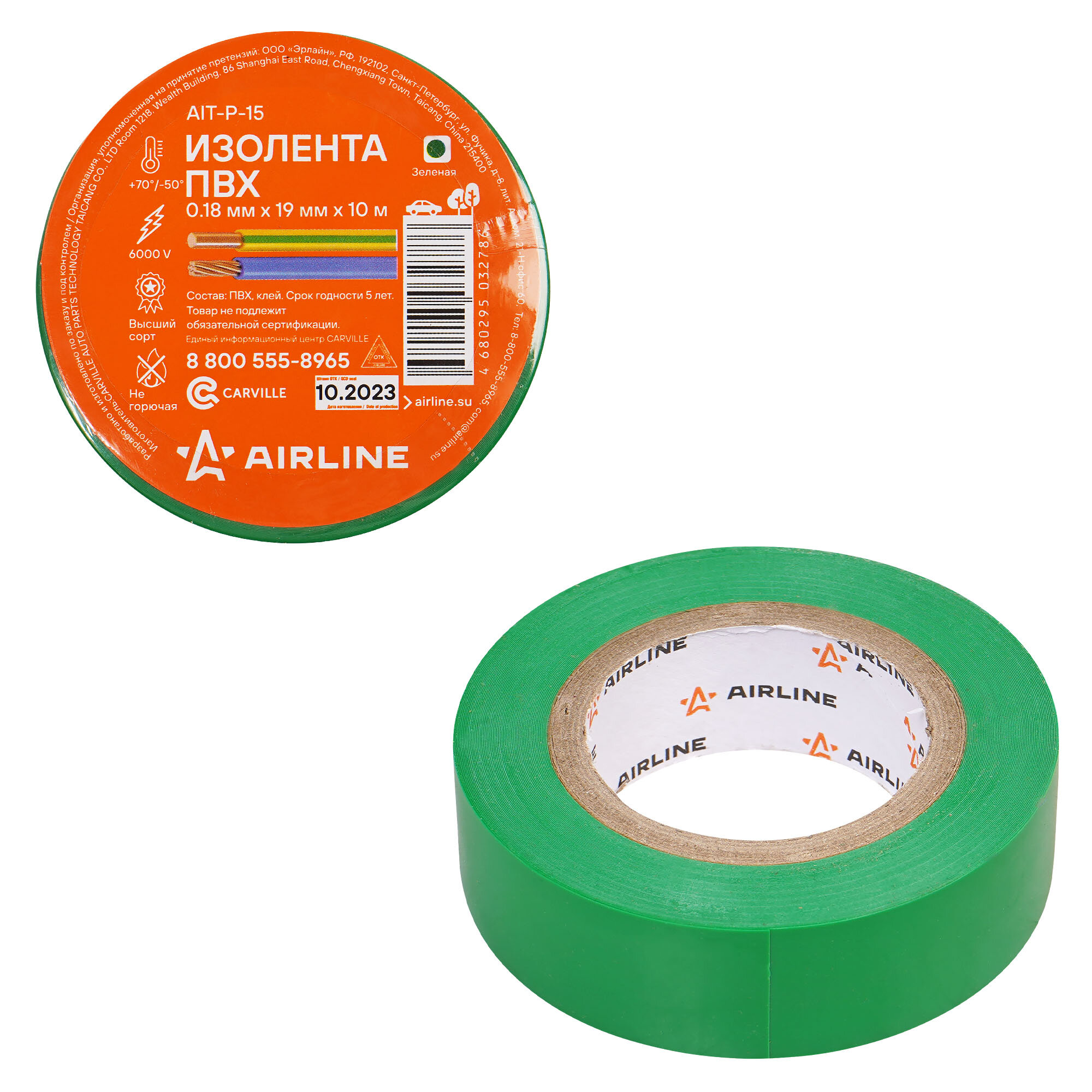 Изолента ПВХ, зеленая, 15 мм*10 м (AIT-P-05), Airline, 1 шт
