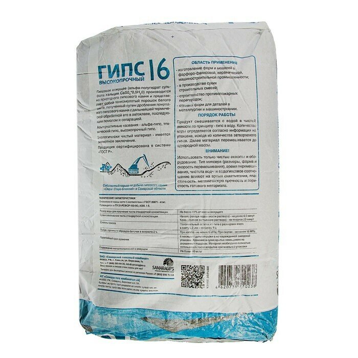Гипс высокопрочный 40кг SAMARAGIPS ГВВС-16 3364212 интересное: