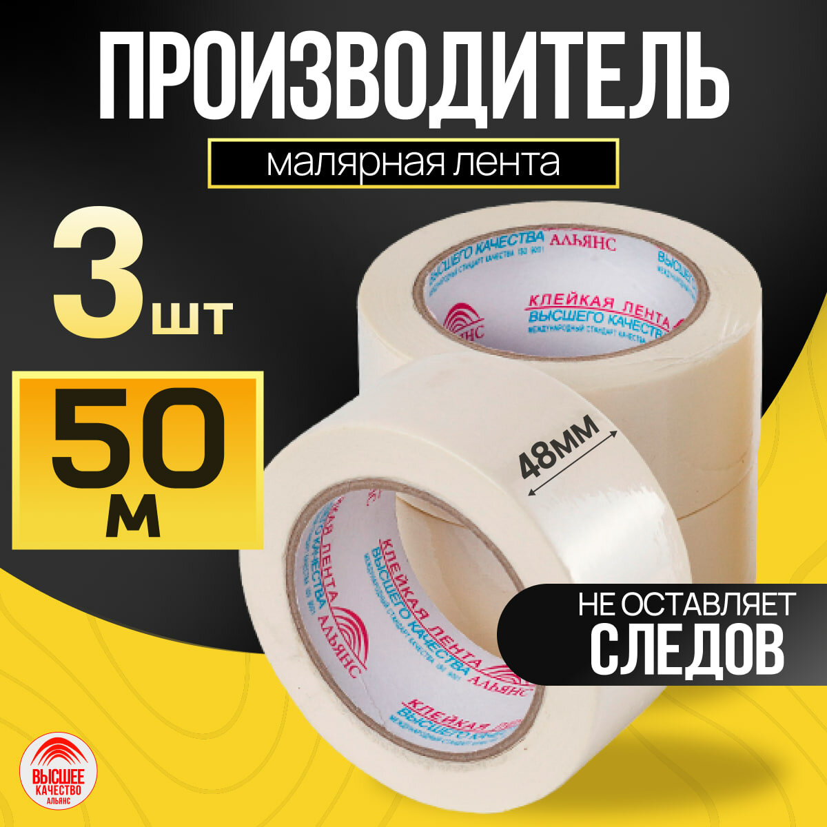 Лента малярная / малярный скотч, 48 мм*50 м, 3 шт. , для защиты поверхностей при проведении малярных работ интересное: