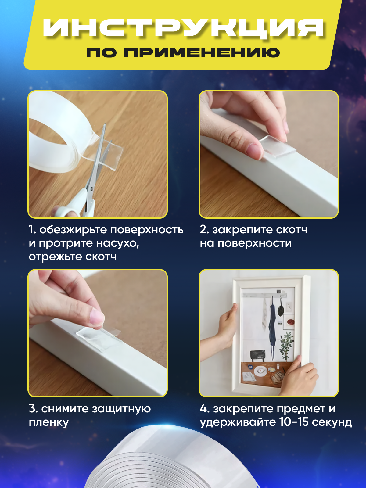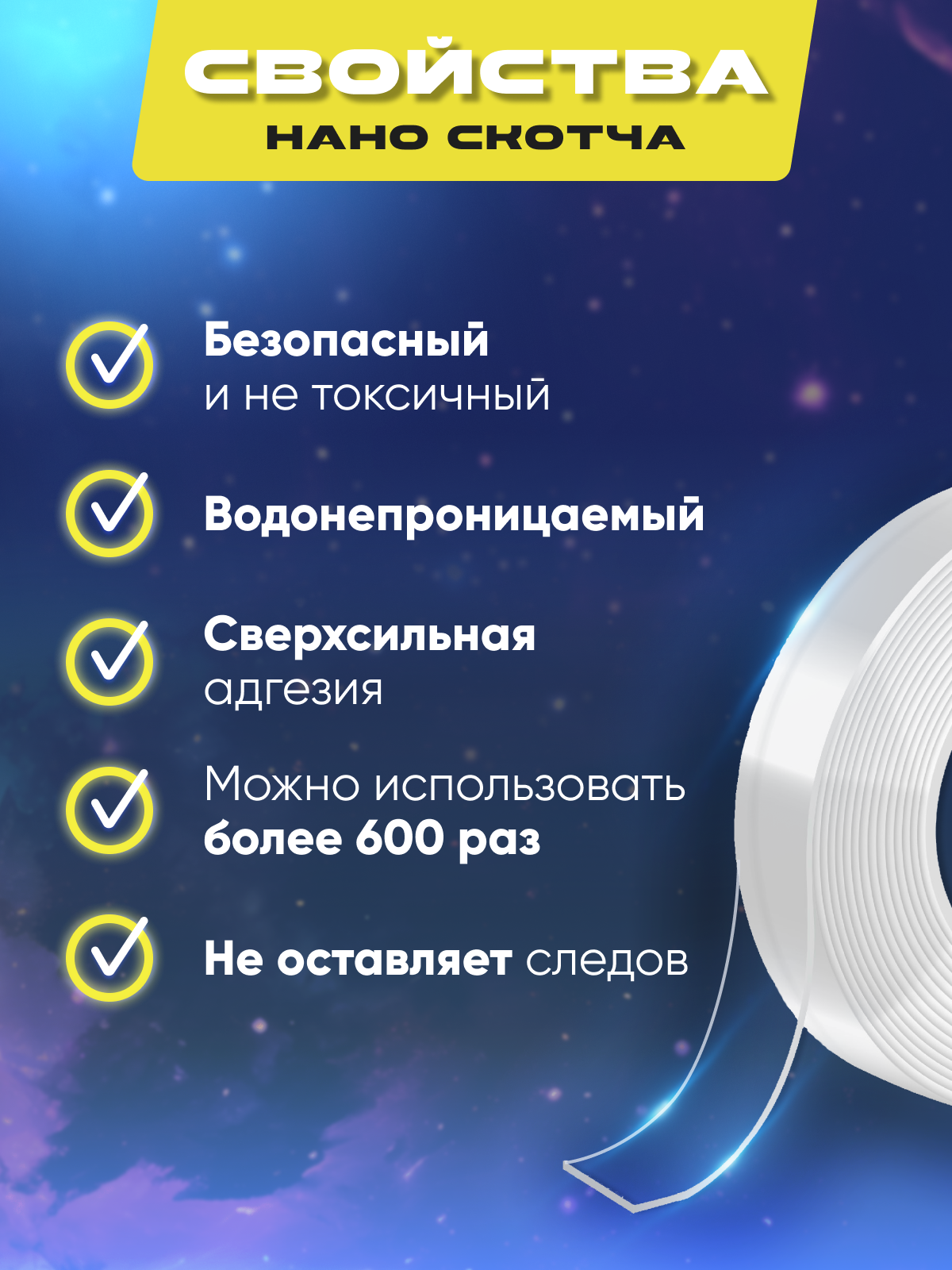 Двусторонний нано скотч прозрачный клейкая лента длина 5 метров узкий ширина 1 см интересное: