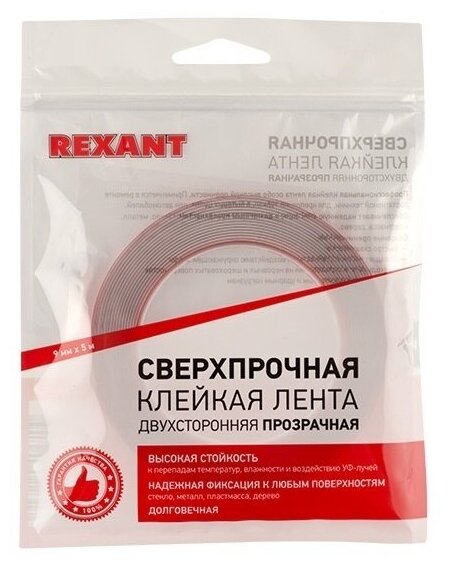 Купить Скотч двухсторонний 9ммх5м прозр. Rexant 09-6509