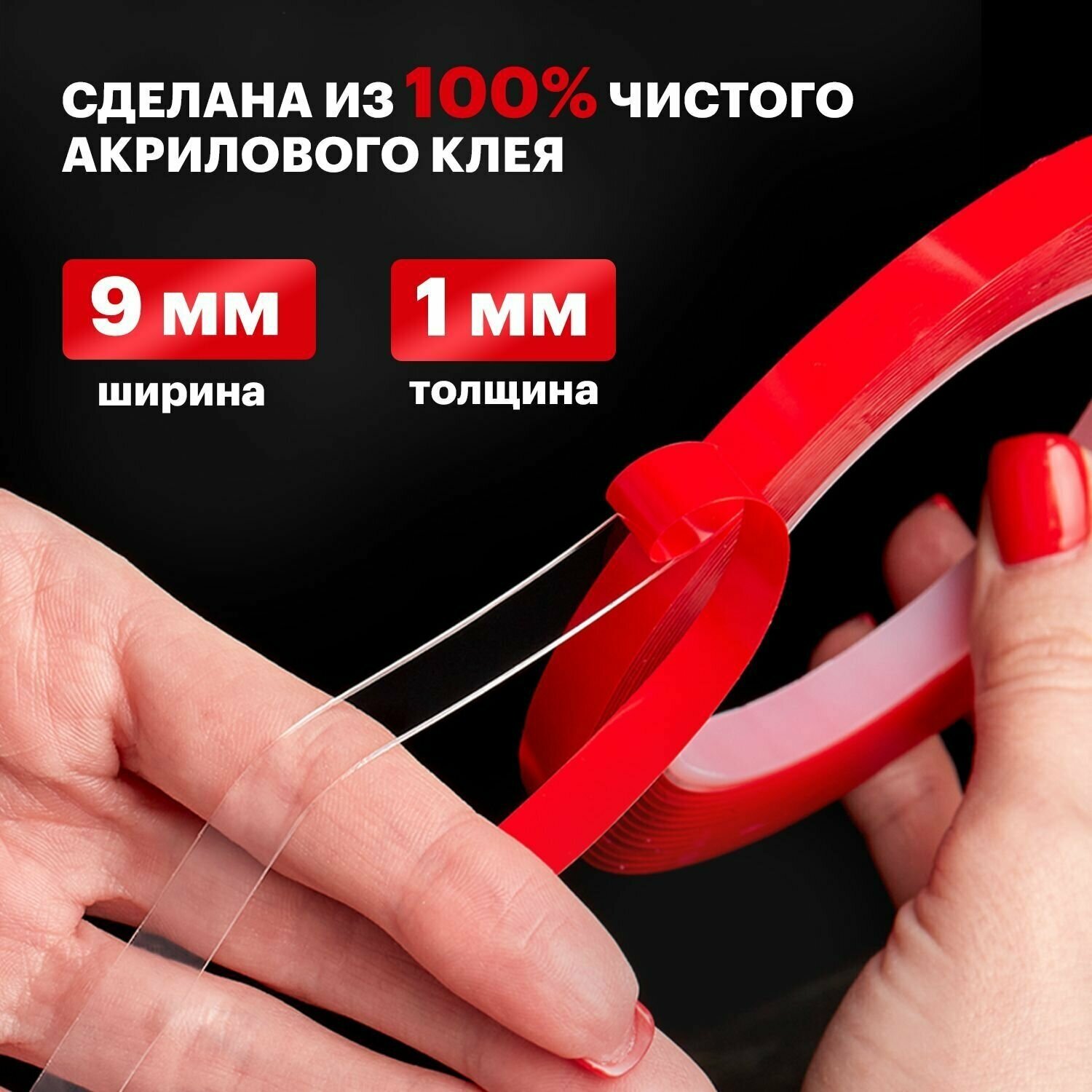 Скотч двухсторонний прозрачный на акриловой основе 9мм ролик 5м