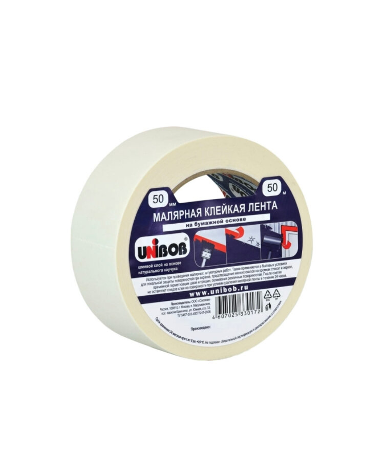 Клейкая лента малярная UNIBOB профессиональная 50 мм х 50 м (реальная длина!) 1 шт