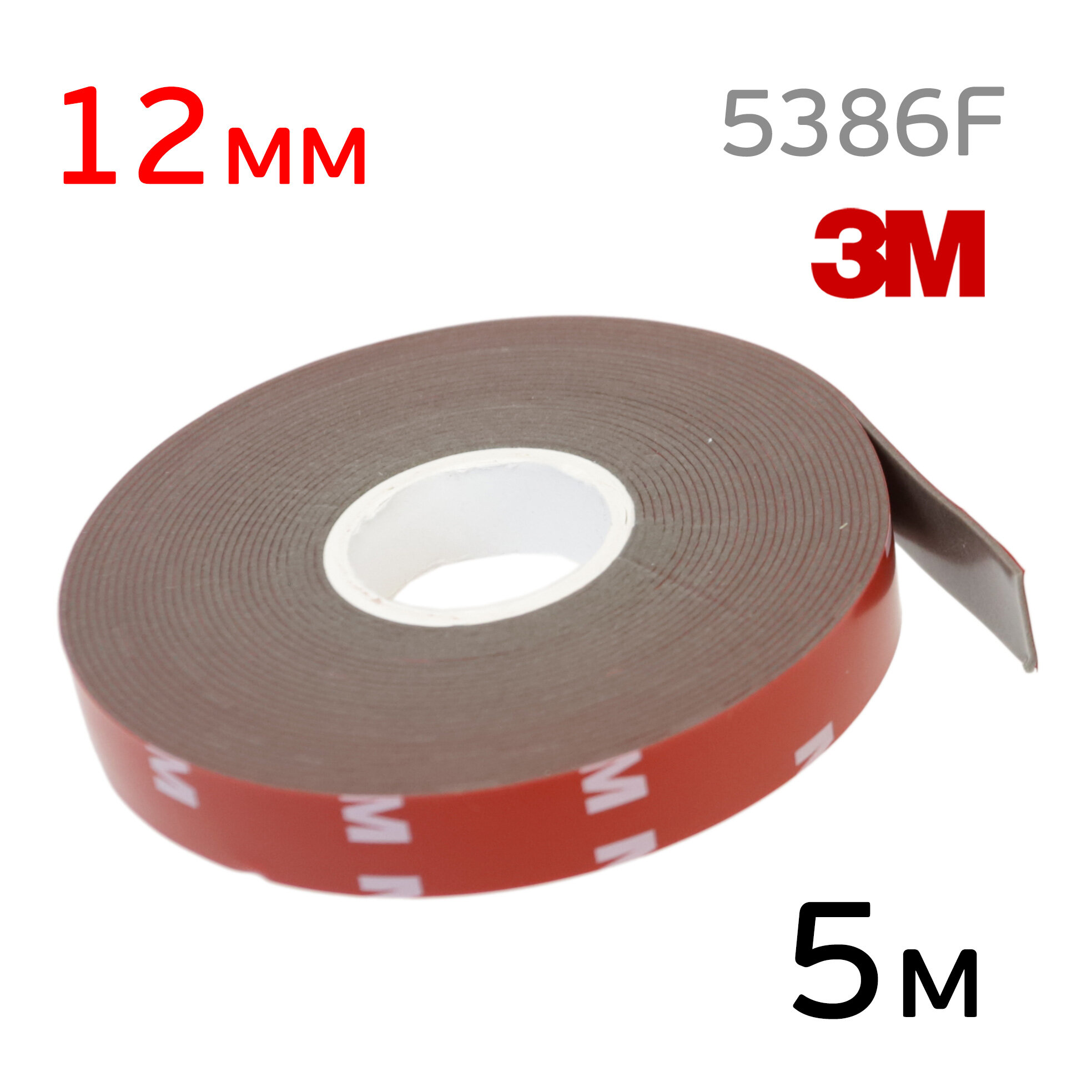 Скотч двухсторонний 3M 12мм x 5м акриловый серый автомобильный высокопрочный 5386F интересное: