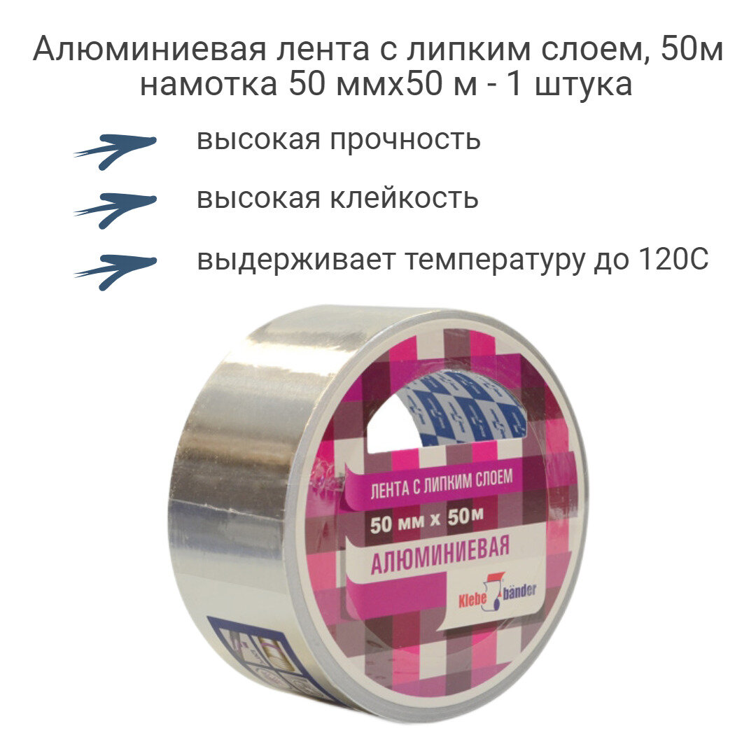 Алюминиевая клейкая лента, 50ммx50м, без И/У, KLEBEBANDER - 1 штука