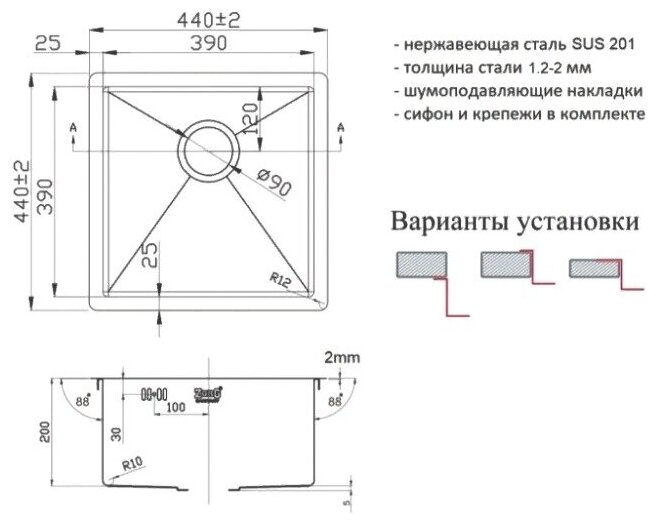 Мойка для кухни ZorG ZL R 440440 BRONZE бронза, квадратная, толщина 1,2 мм, полная комплектация