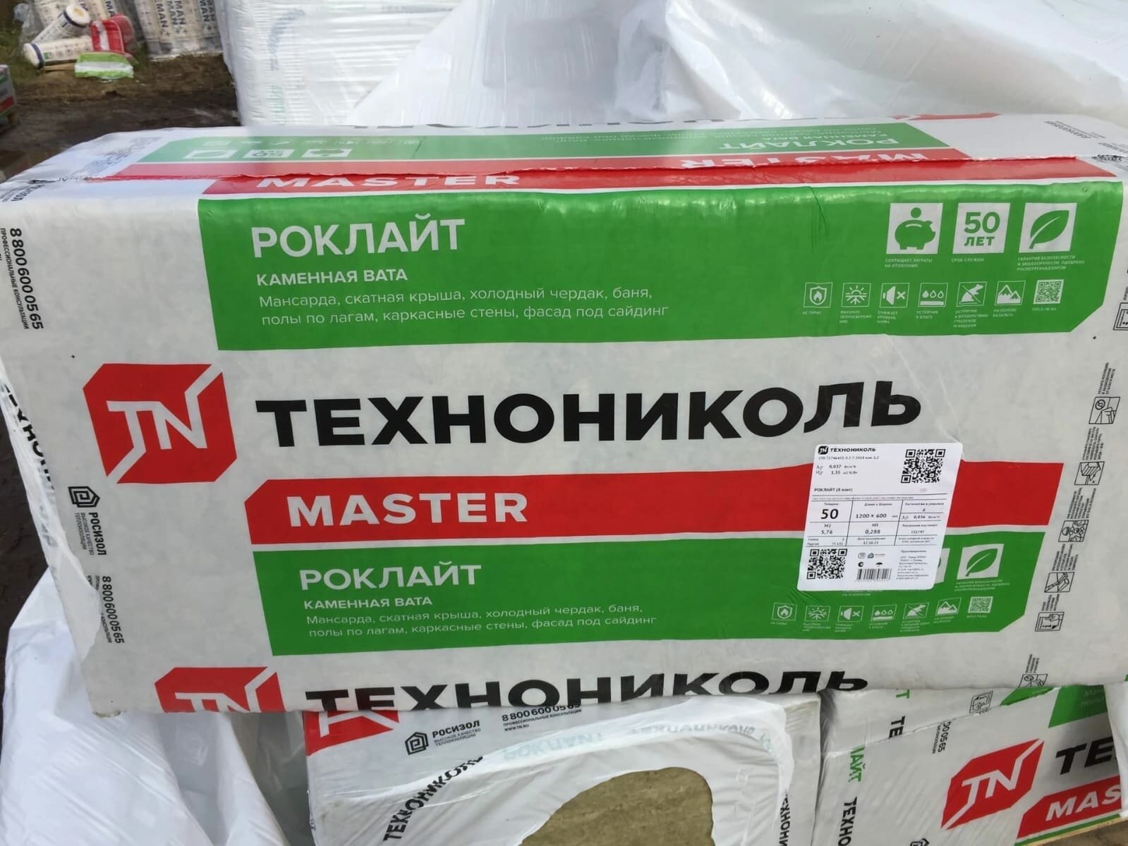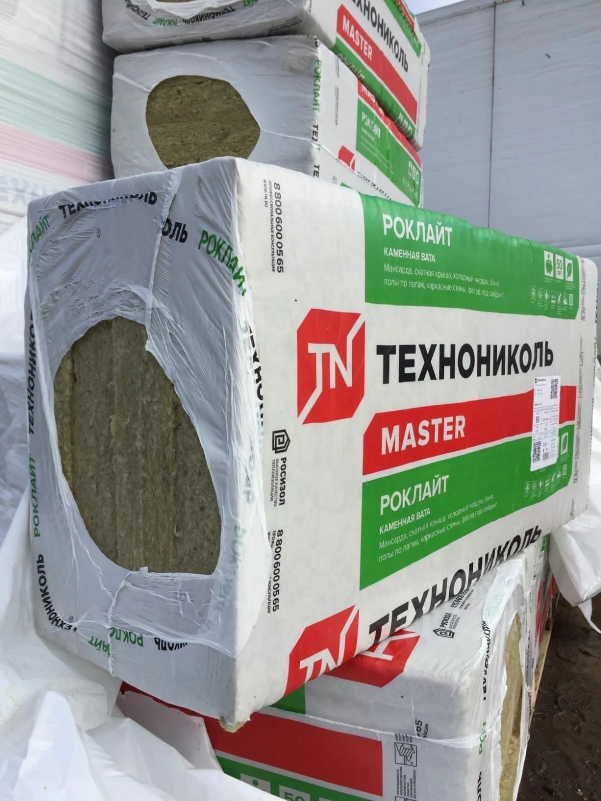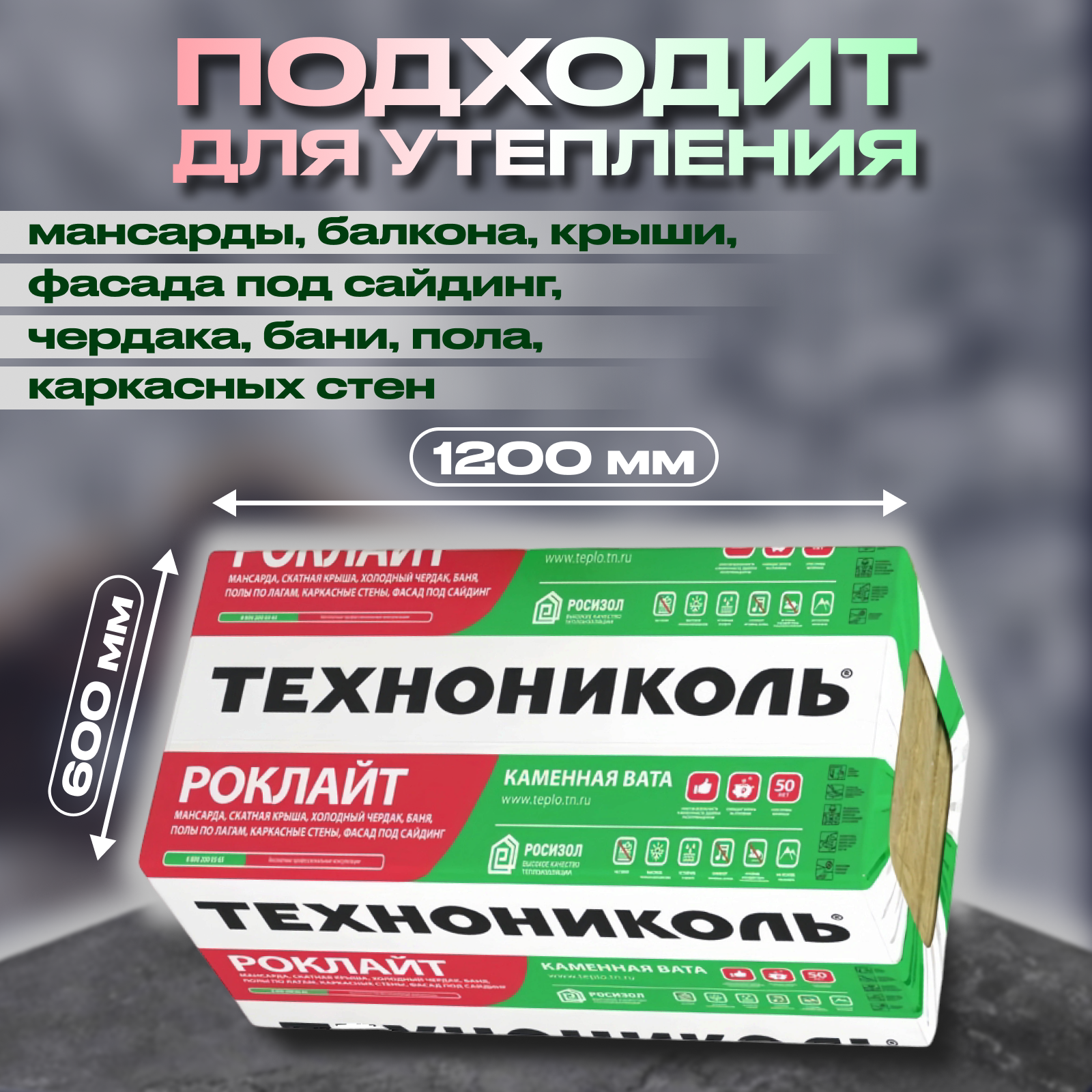 Утеплитель из каменной ваты Технониколь Роклайт 1200х600х50, 8 плит, 5.76 м2 / базальтовый утеплитель