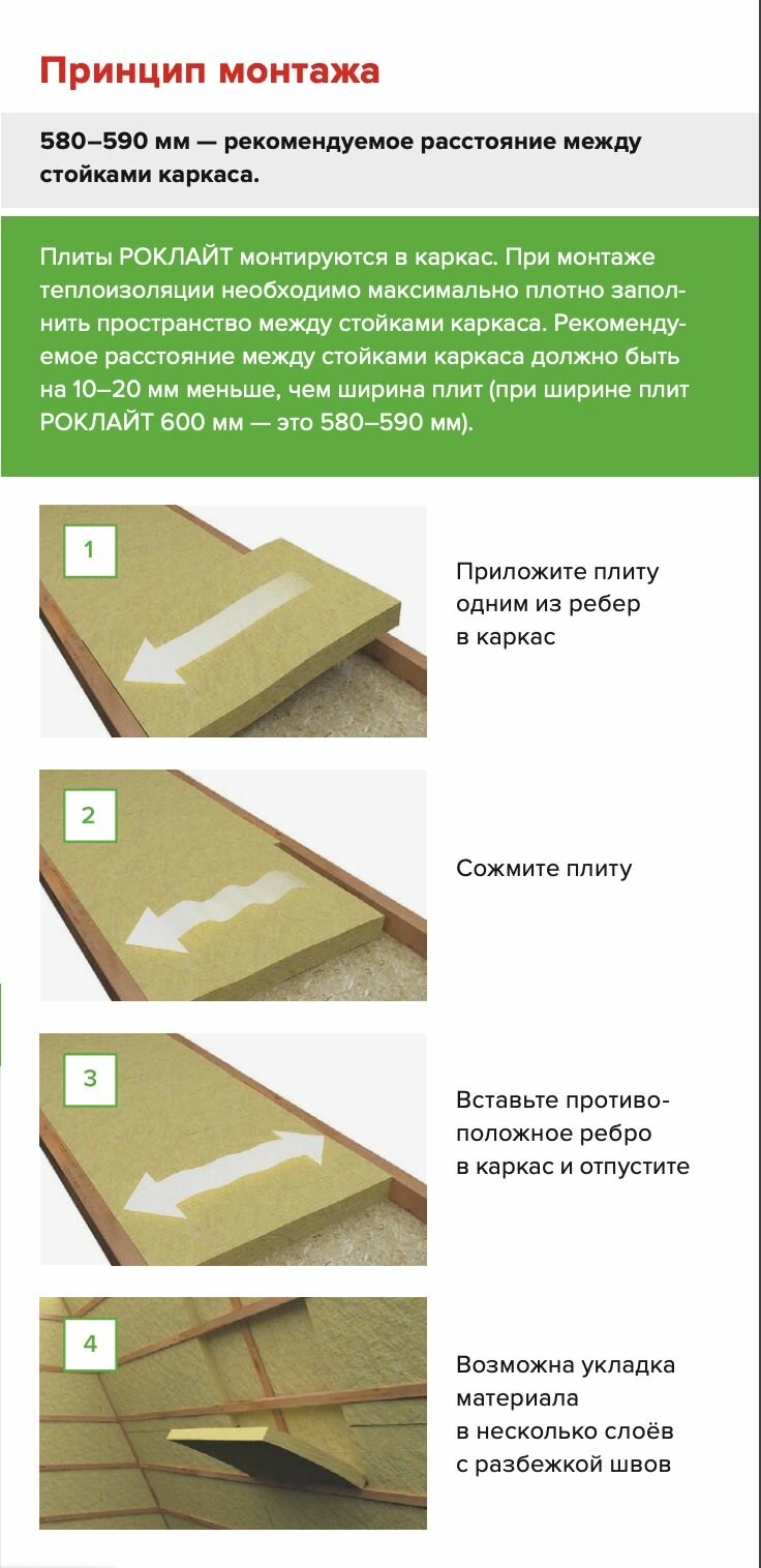 Утеплитель из каменной ваты Технониколь Роклайт 1200х600х50, 8 плит, 5.76 м2 / базальтовый утеплитель