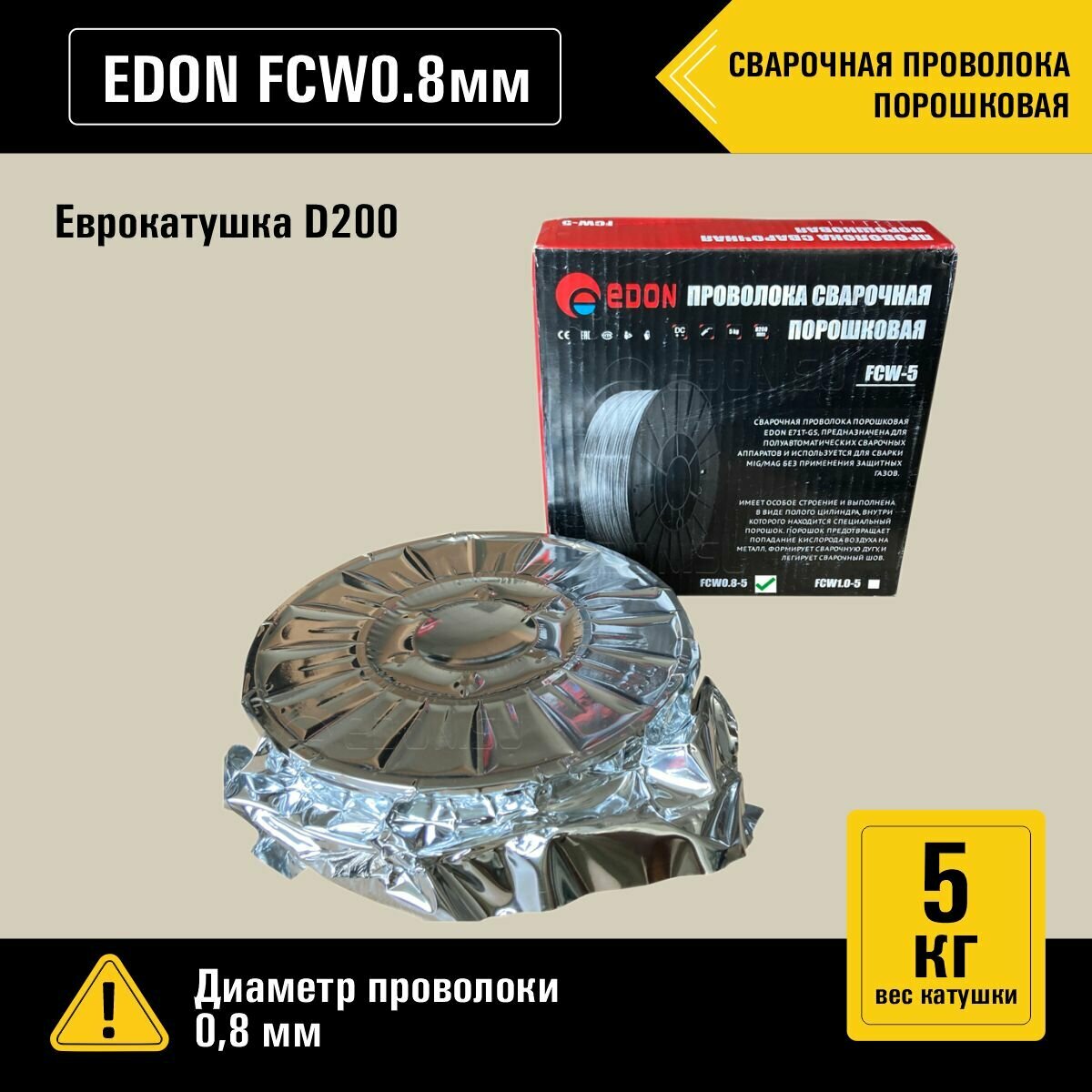 Сварочная проволока порошковая Edon FCW0.8-5 (0,8 мм, 5,0 кг, D200)
