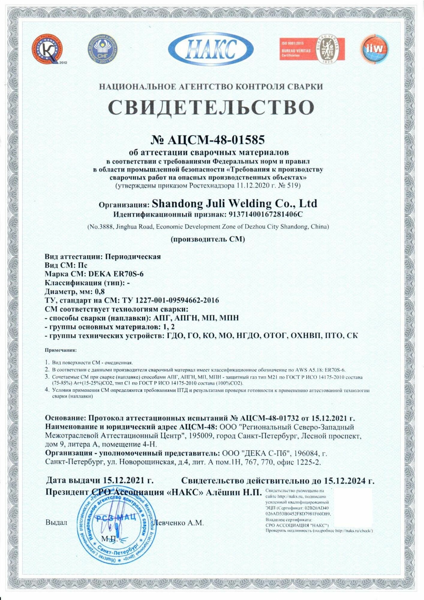 Проволока ER70S-6 0.8мм 1 кг DEKA