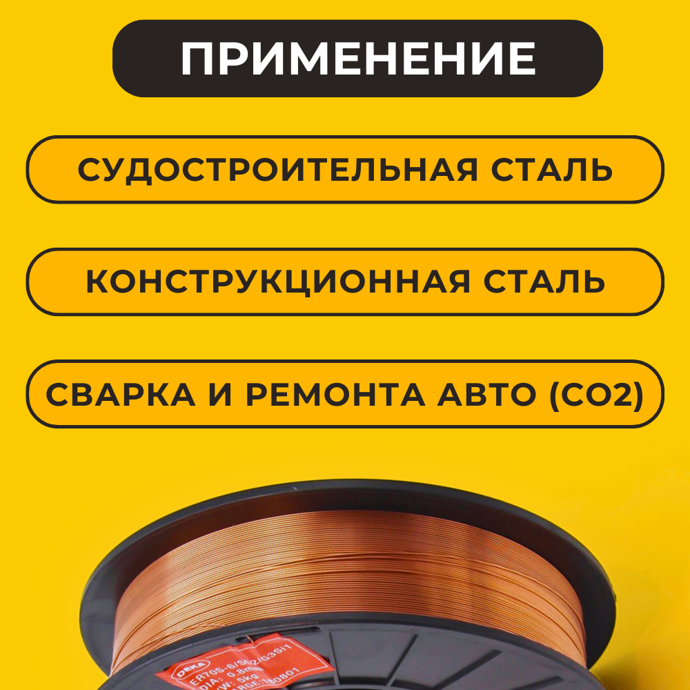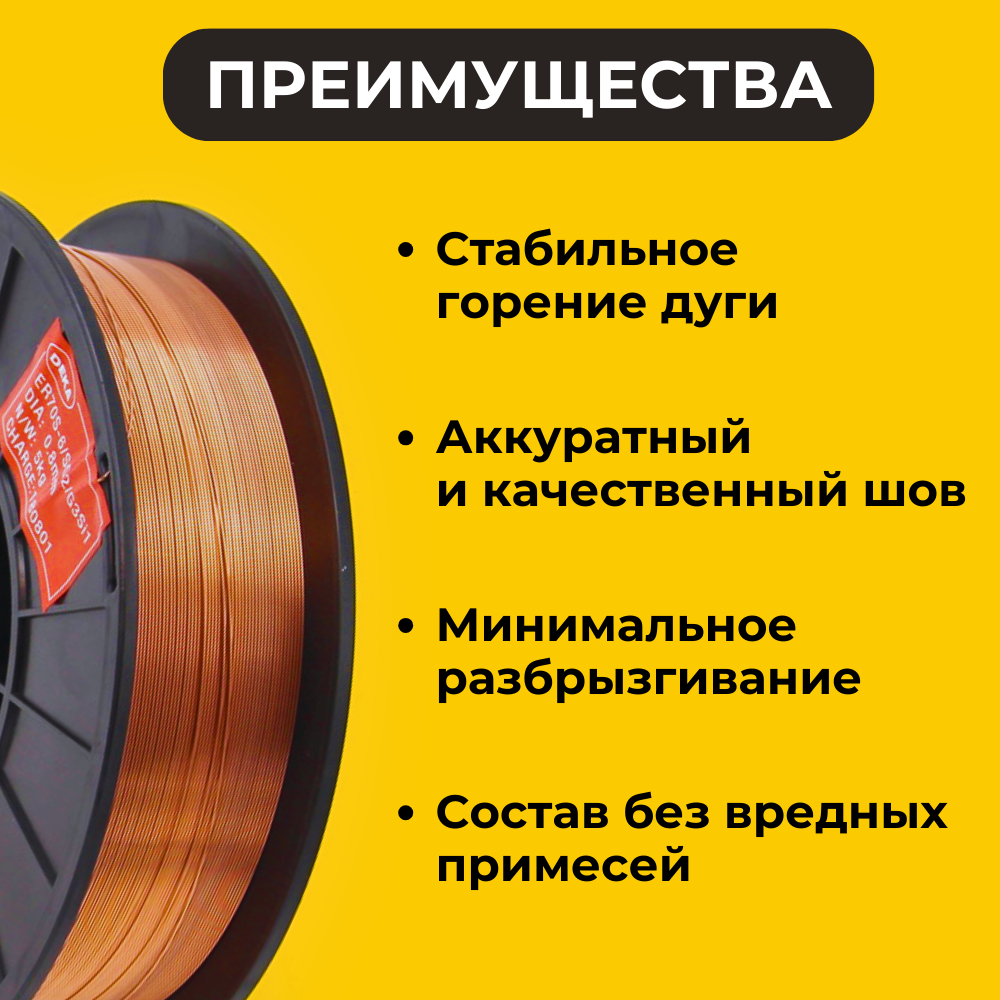 Сварочная проволока омедненная ER70S-6 ф 0,6 мм (5 кг) D200 Deka