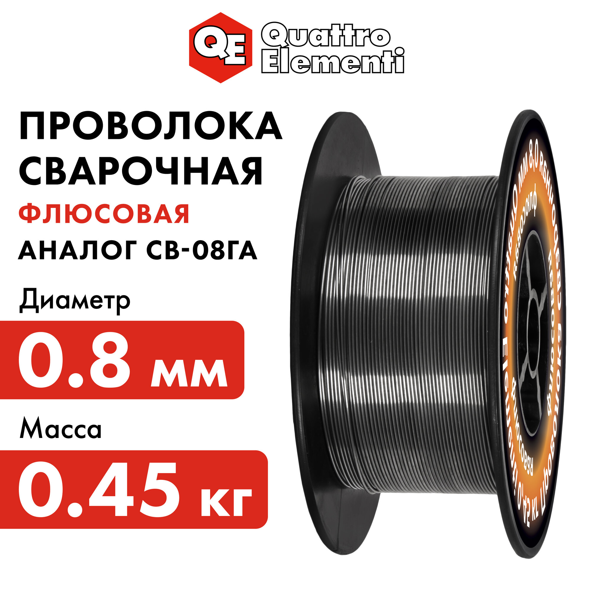Проволока сварочная QUATTRO ELEMENTI флюсовая, 0,8 мм, масса 0,45 кг, блистер